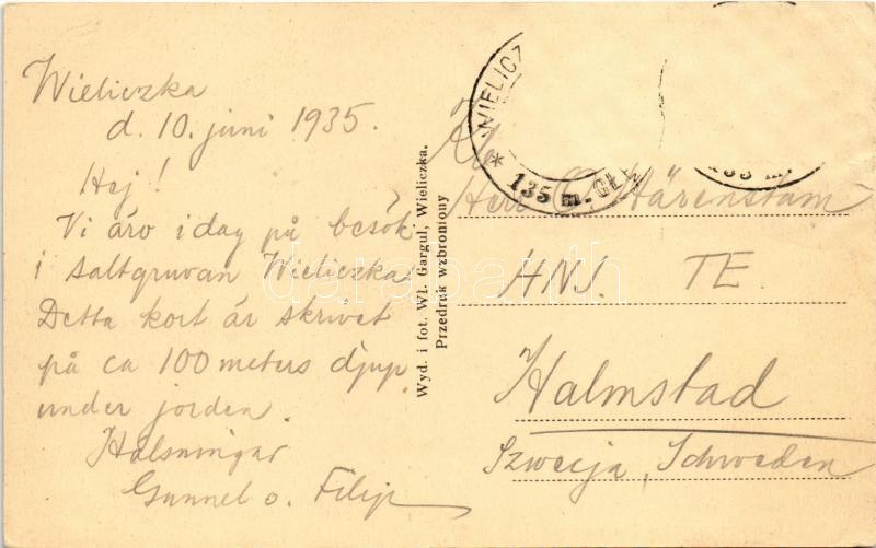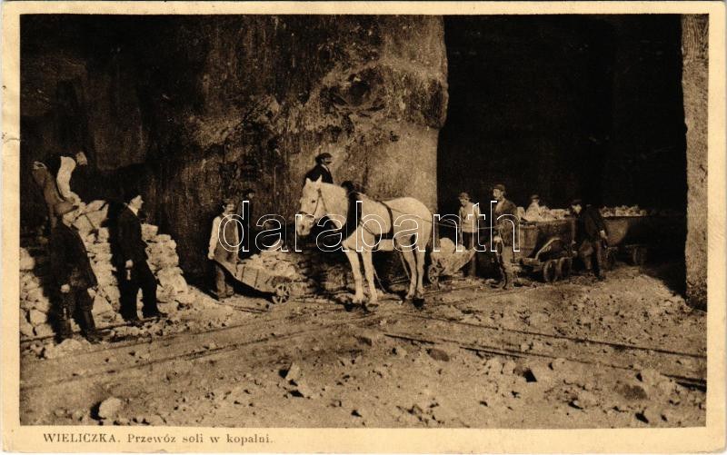 1935 Wieliczka, Przewóz soli w kopalni / salt mine, horse, mine cars, interior (tear)