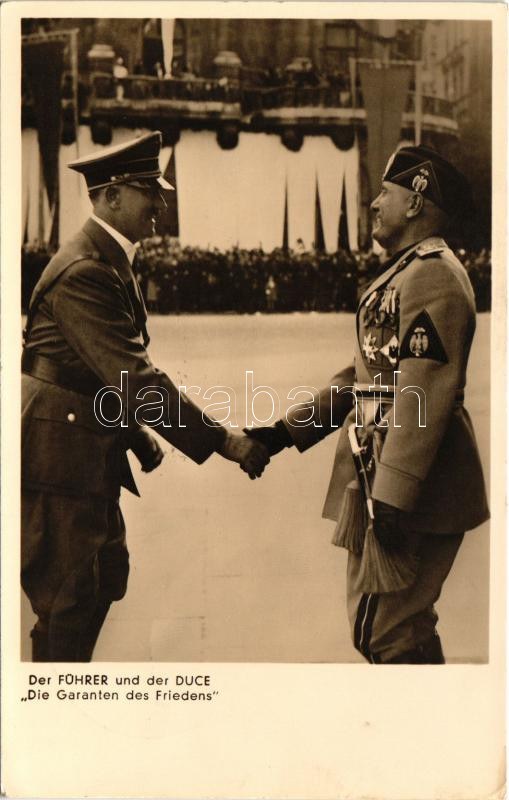 1937 Der Führer und der Duce, Die Garanten des Friedens. Adolf Hitler, Benito Mussolini. Photo Hoffmann + So. Stpl (EK)