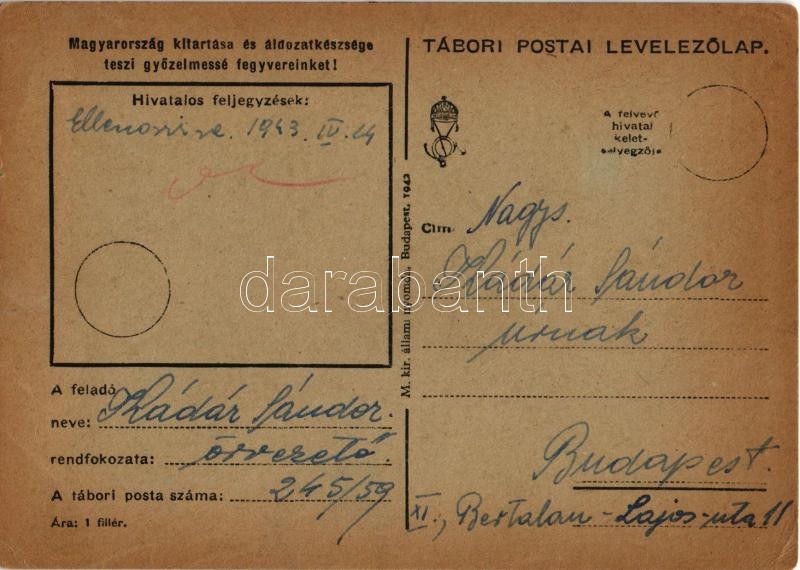 1943 Magyar Húsvét. Második világháborús Tábori Postai Levelezőlap, húsvéti üdvözlet ...