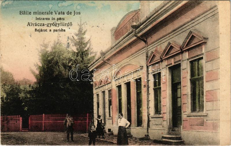 Alváca, Vata de Jos (Hunyad); Gyógyfürdő, bejárat a parkba. Berkovits kiadása / Intrarea in parc / spa...