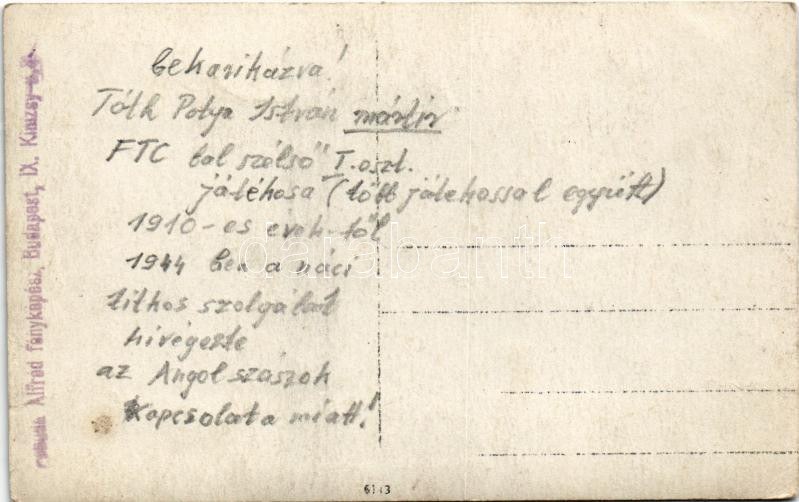 Az FTC Ferencváros játékosai, köztük Tóth Potya István (1891-1945). Pobuda Alfréd fényképész felvétele / sport photo ...