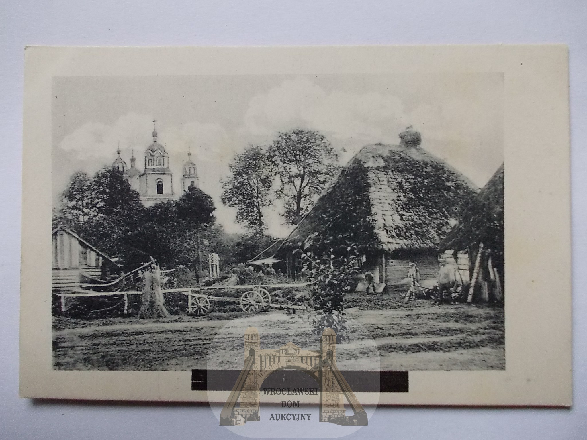 Białoruś, Stołowicze k. Baranowicze, cerkiew, chaty, ok. 1915
