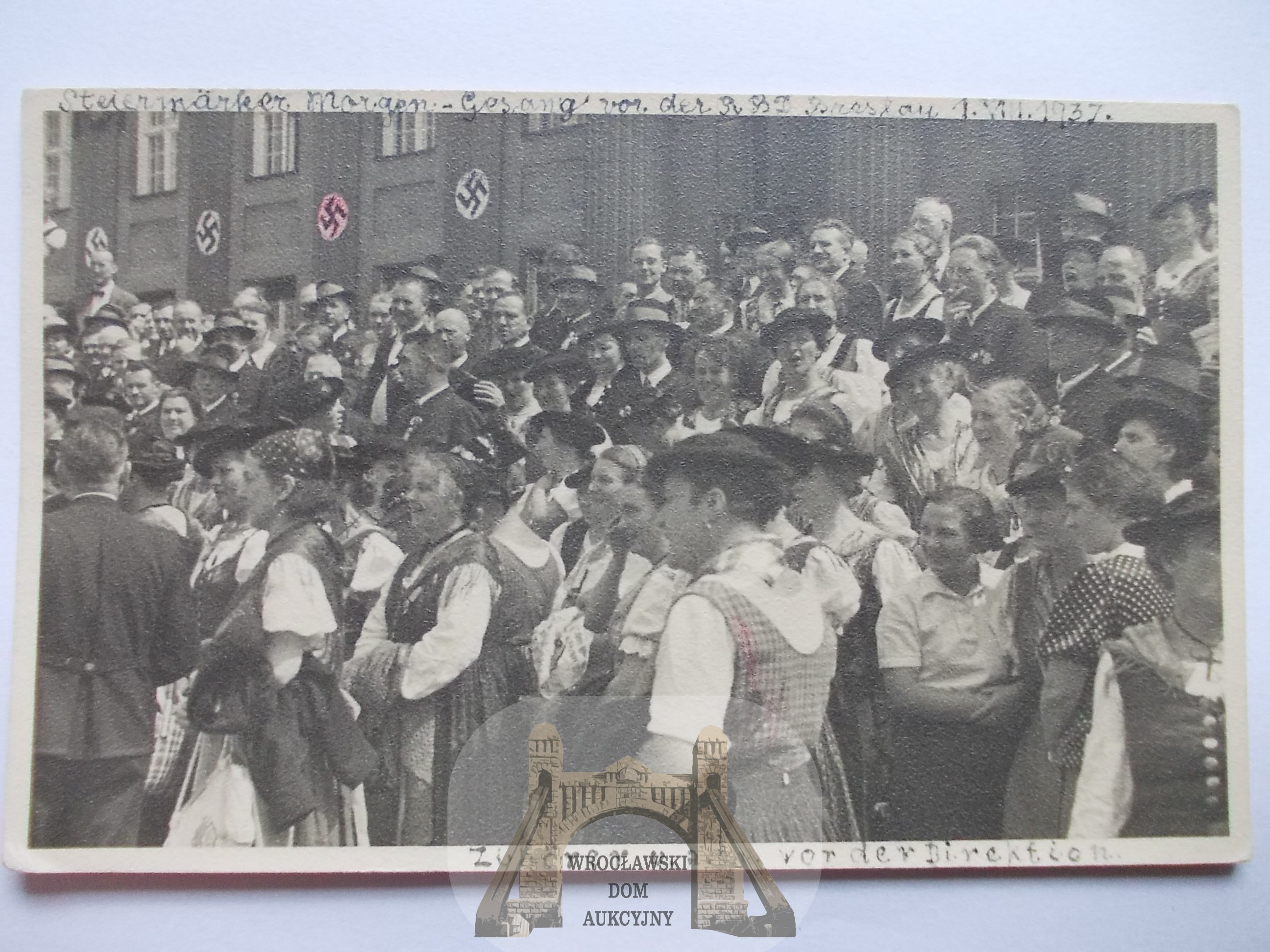 Wrocław, Breslau, Dyrekcja Kolei, święto śpiewacze, propaganda, 1937 (wysłana 1949 r.)