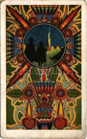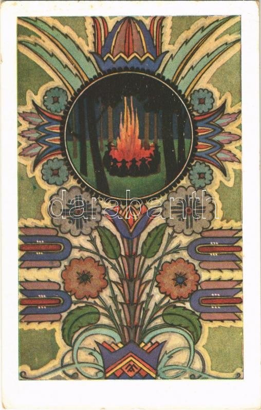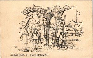 Budapesti 25. Szent Imre öreg cserkészcsapat / Hungarian boy scout art postcard s: Megyer Meyer Attila (EK...