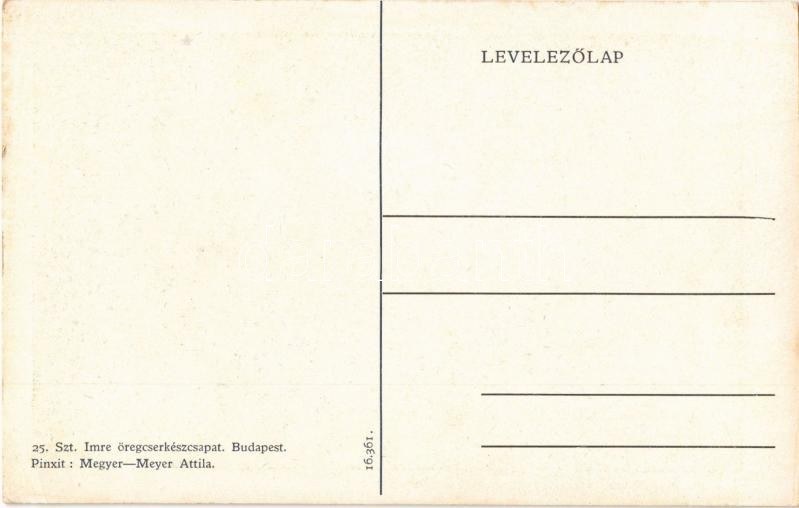 Budapesti 25. Szent Imre öreg cserkészcsapat / Hungarian boy scout art postcard s: Megyer Meyer Attila (EK)