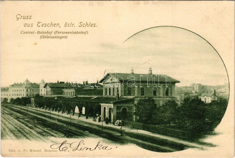 Cesky Tesín, Teschen; Central-Bahnhof, Personenbahnhof, Geleisanlagen. Fr. Wenzel / railway station (EK...