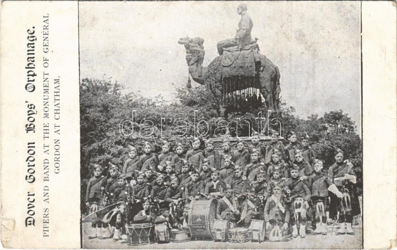 Chatham, Dover Gordon Boys' Orphanage, Pipers and band at the monument of General Gordon (r)