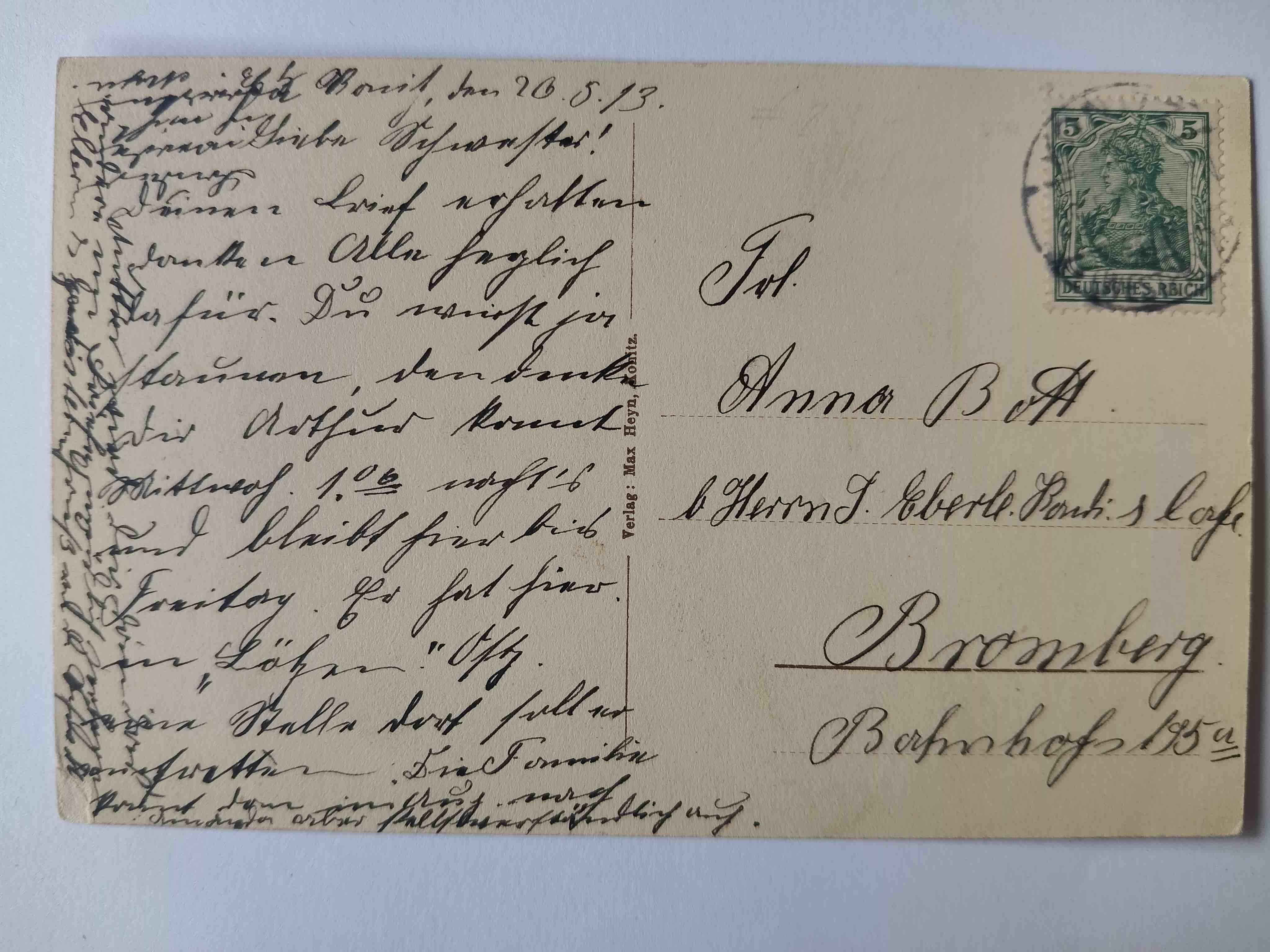 Przedmiotem licytacji jest oryginalna pocztówka. Stan zachowania oraz obieg widoczny na fotografiach, brak wad ukrytych.