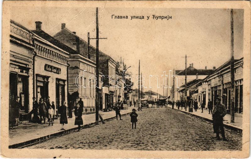 Cuprija, Glavna ulica / main street, shops, automobile (fa)