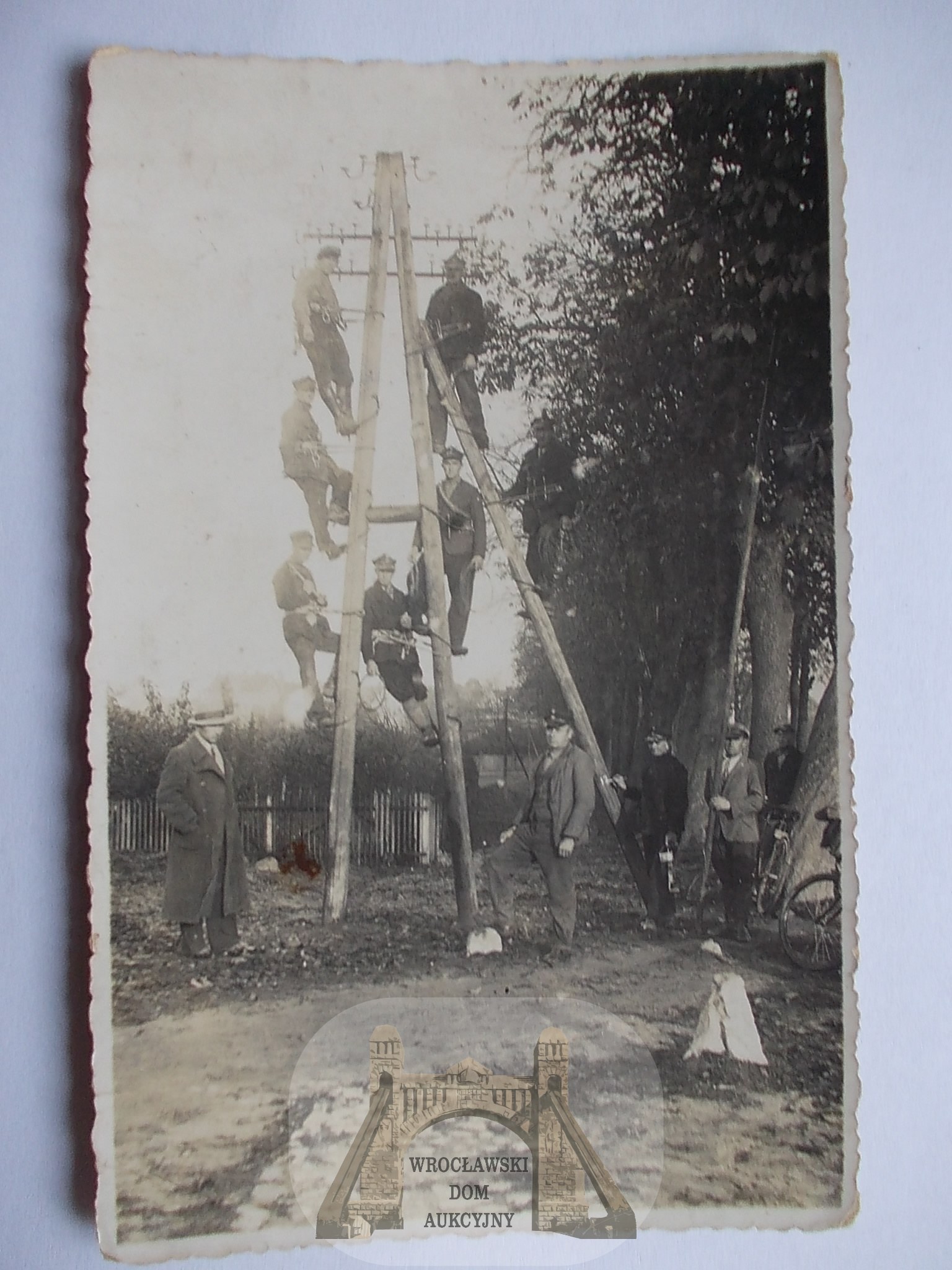 Czarnków, Czernikau, słup telegraficzny, pracownicy, ok. 1930