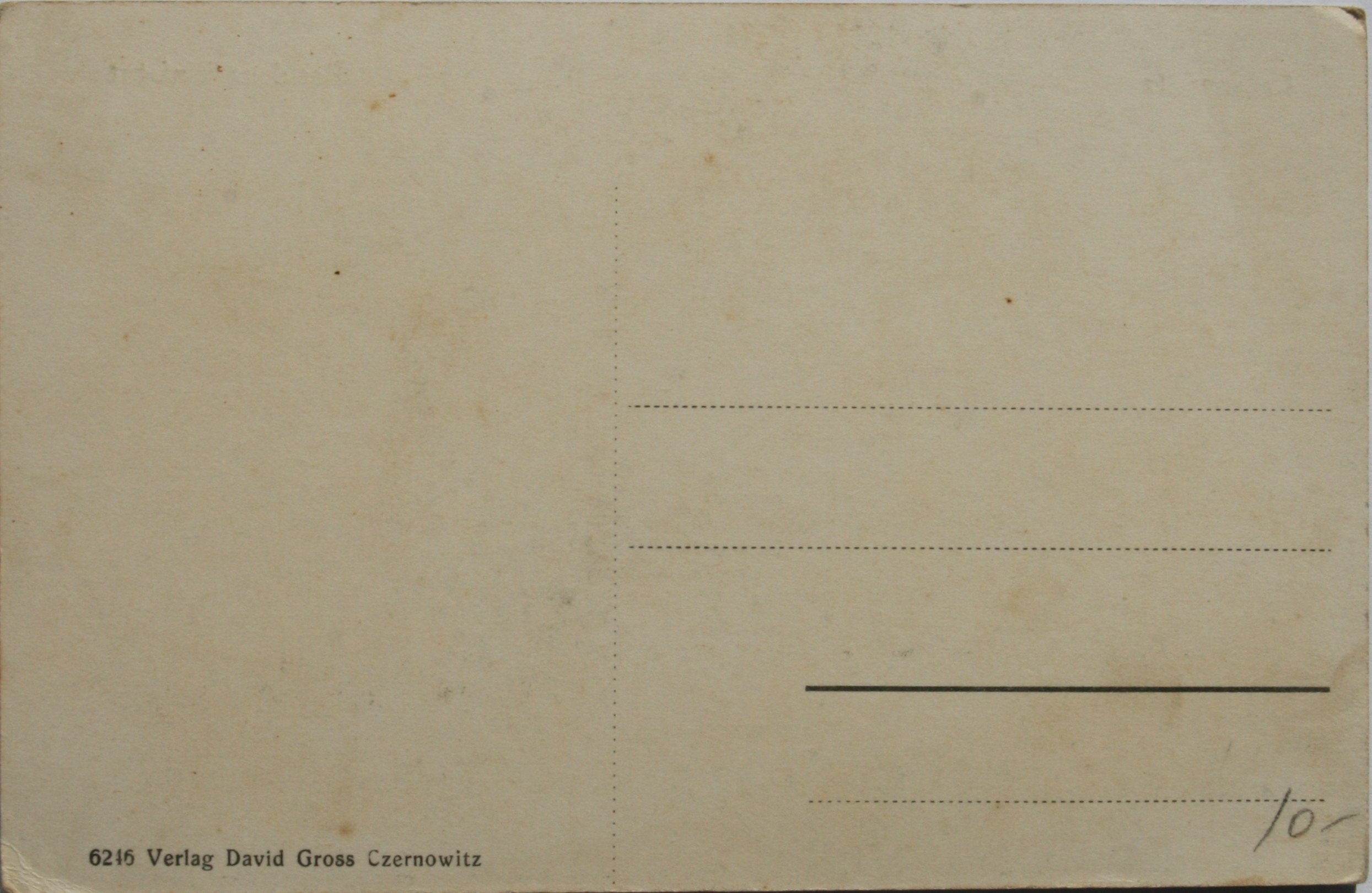 Wyd. David Gross, Czerniowce. Kartka bez obiegu. Minimalne uszkodzenia rogów, poza tym stan bardzo dobry.