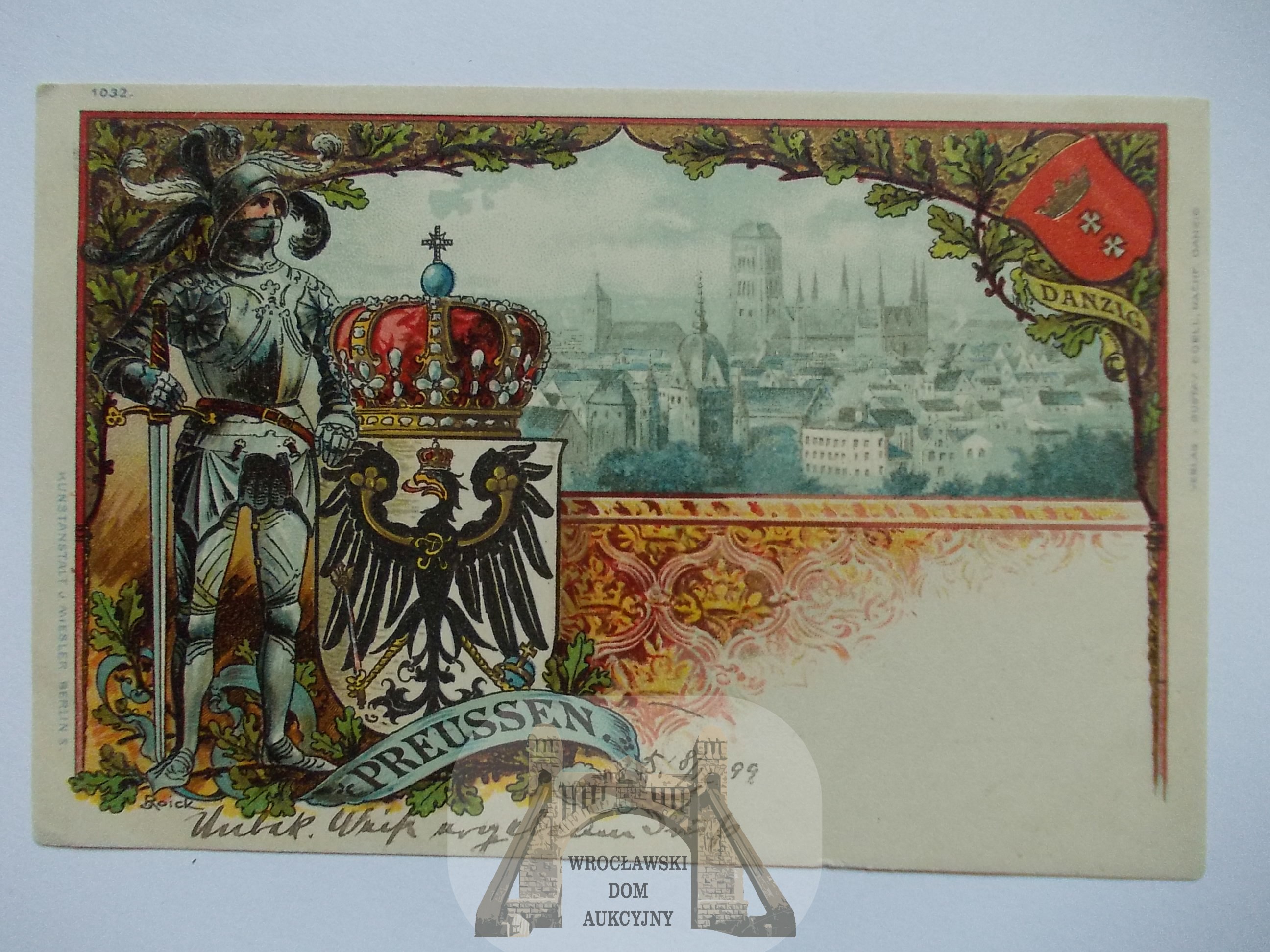 Gdańsk, Danzig, litografia, herb, rycerz 1899