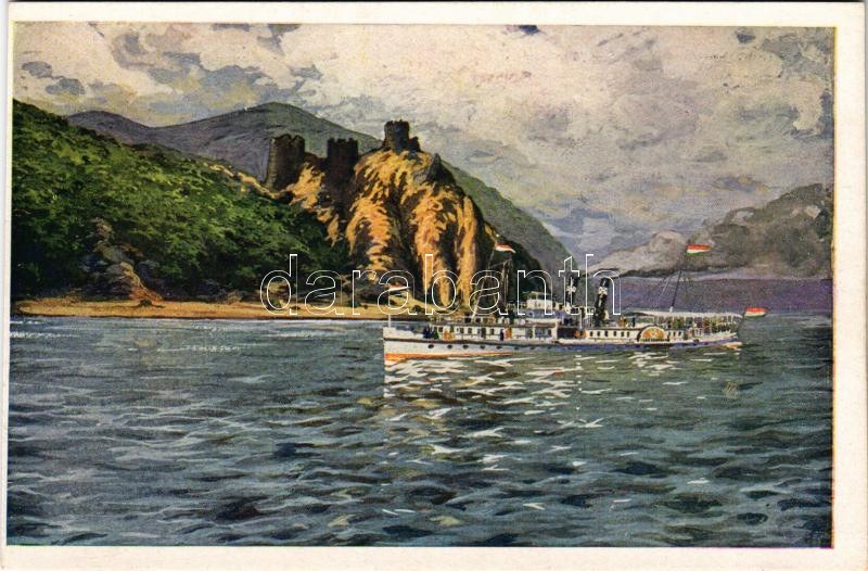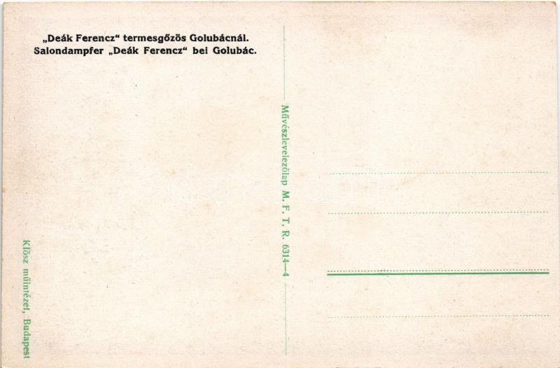 Deák Ferencz termesgőzös Galambócnál. MFTR Művészlevelezőlap 6314-4. Klösz műintézet / Salondampfer "Deák Ferencz" / Deák Ferencz Hungarian passenger steamship near Golubac