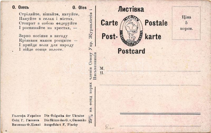 Die Golgotha der Ukraine. Die Skizze des G. v. Gassenko. Ausgeführt F. Plachy / The Golgotha of Ukraine. Sketch by G. v. Gassenko s: F. Plachy (crease)