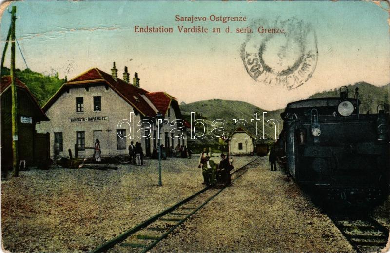 Donje Vardiste, Sarajevo-Ostgrenze, Endstation an d. serb. Grenze. Daniel A. Kajon / railway station at the Serbian border, locomotive, train, locomotive (creases)