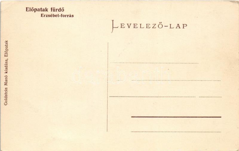 Előpatak, Valcele; Erzsébet forrás a fürdő parkban. Goldstein Manó kiadása / Izvorul Elisabeta / mineral water spring in the spa park (EK)