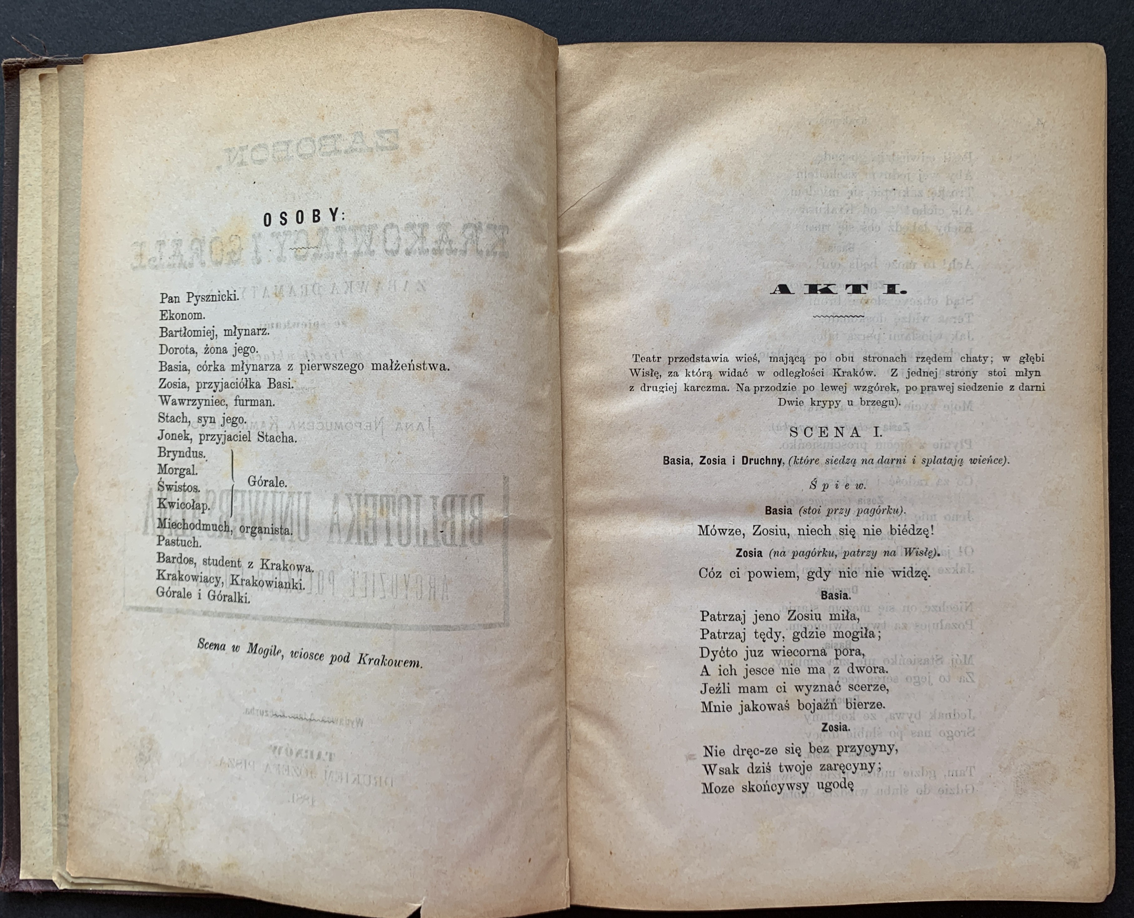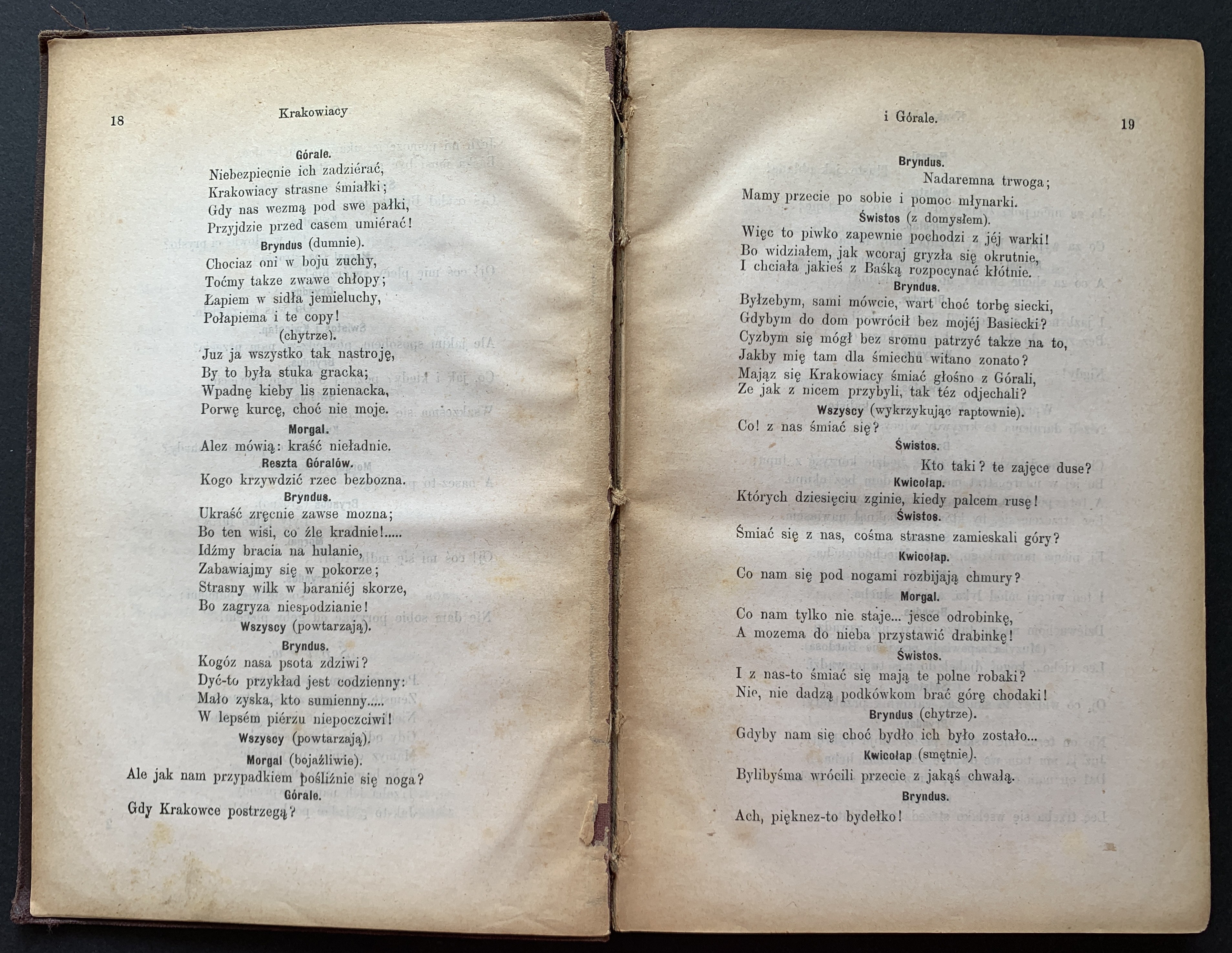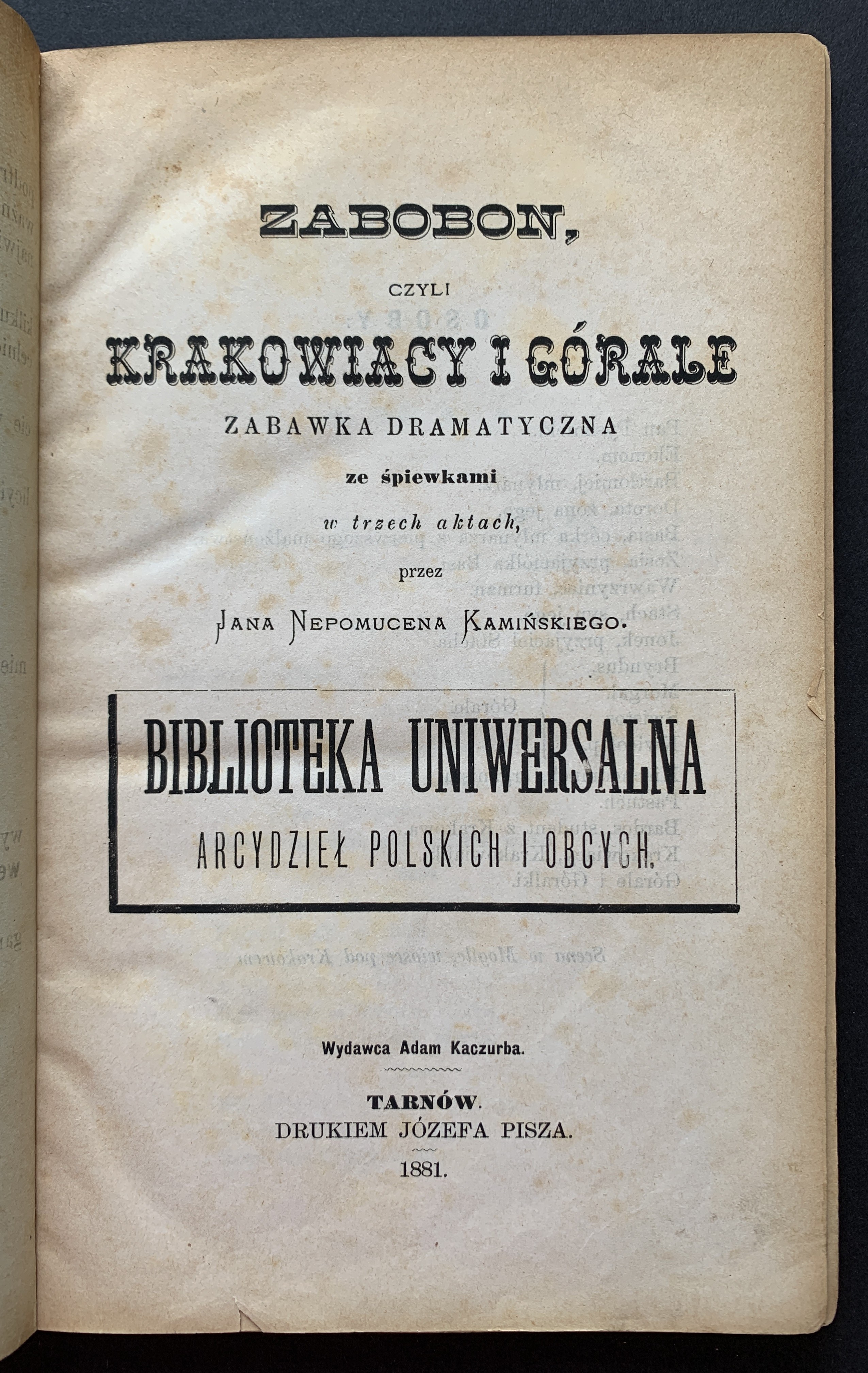 1. Jan Nepomucen Kamiński - Zabobon czyli Krakowiacy i Górale. Zabawka dramatyczna ze śpiewkami w trzech aktach. Tarnów 1881, drukiem Józefa Pisza. Stron: 127.
