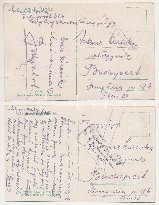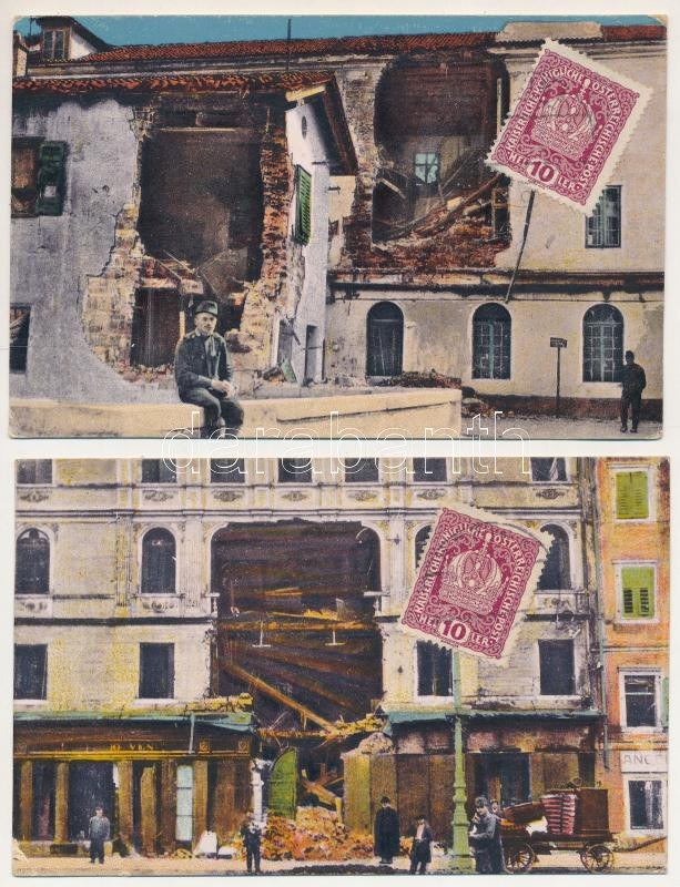 Gorizia, Görz; Weltkrieg 1914-15. / 2 pre-1945 postcards: WWI Austro-Hungarian K.u.k. military: demolished houses...