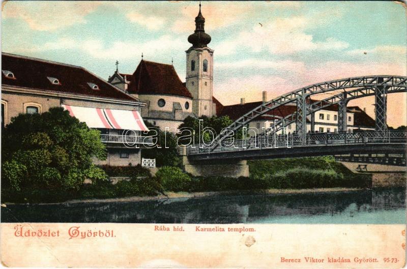 Győr, Rába híd, karmelita templom. Berecz Viktor kiadása (EB)