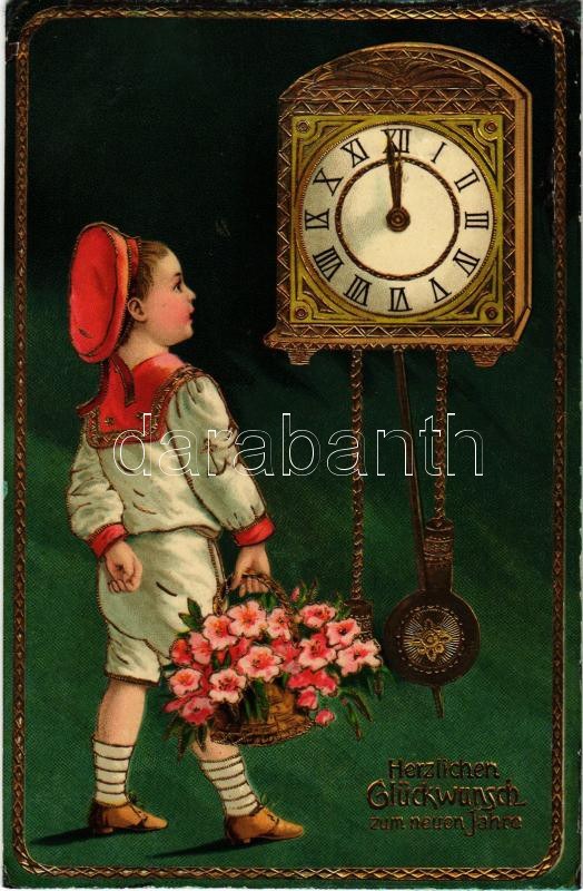 Herzlichen Glückwunsch zum neuen Jahre! / Újévi üdvözlet / New Year greeting art postcard. Emb. litho (r)