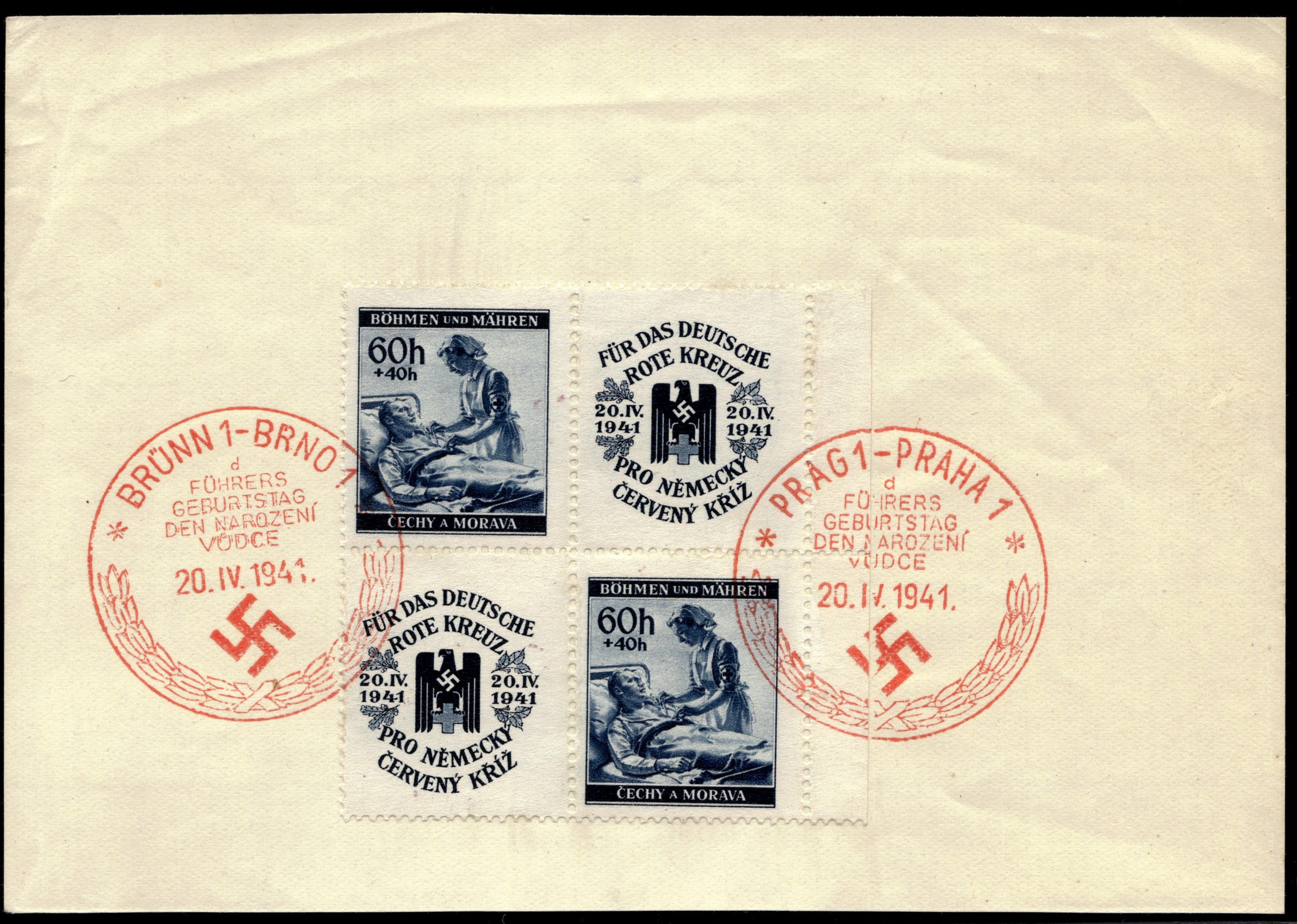 Czechoslovakia. Brno & Prague Postcard Sized Carton Four GG Stamps 20.4.1941