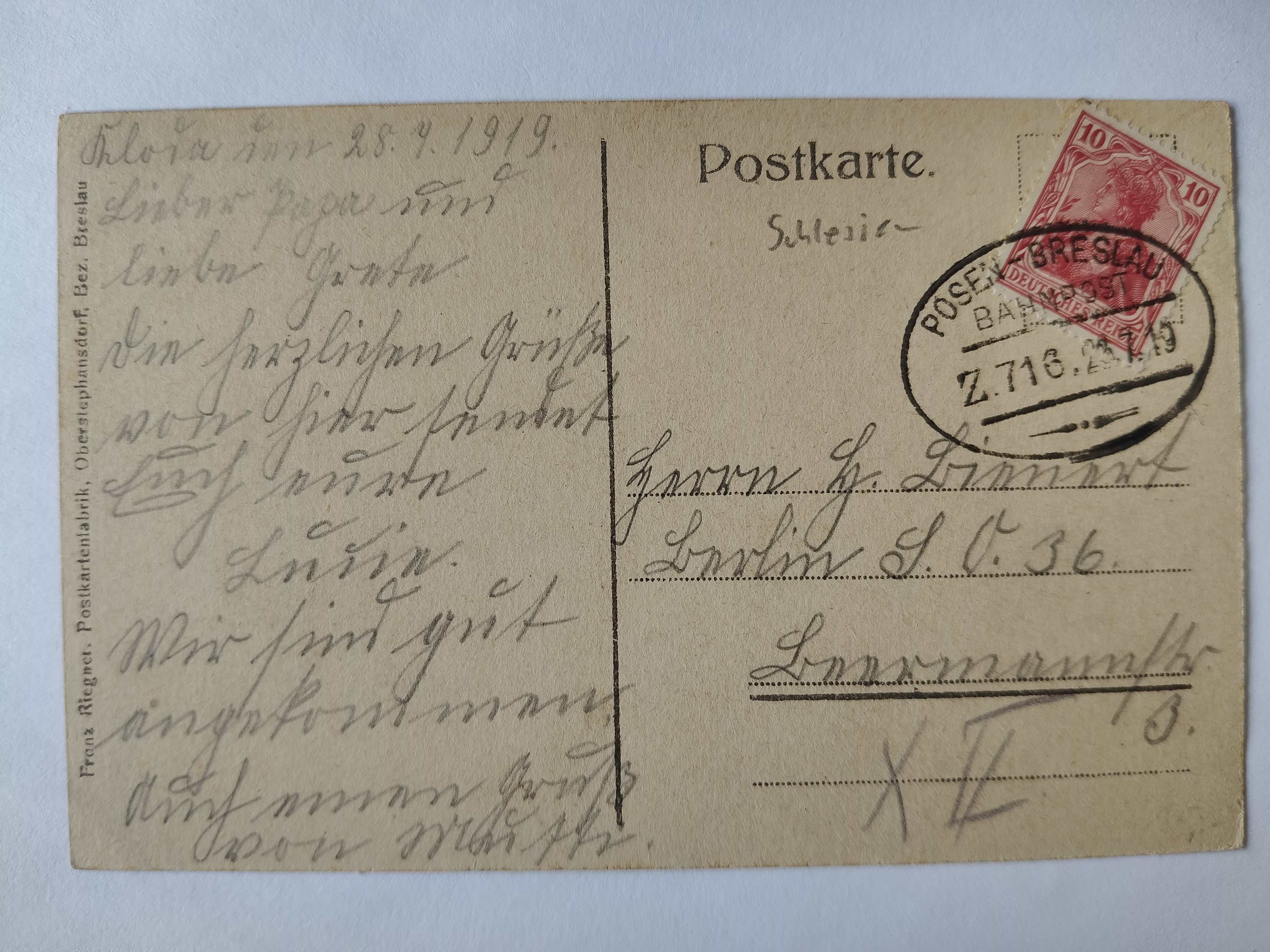 Przedmiotem licytacji jest oryginalna pocztówka. Stan zachowania oraz obieg widoczny na fotografiach, brak wad ukrytych.