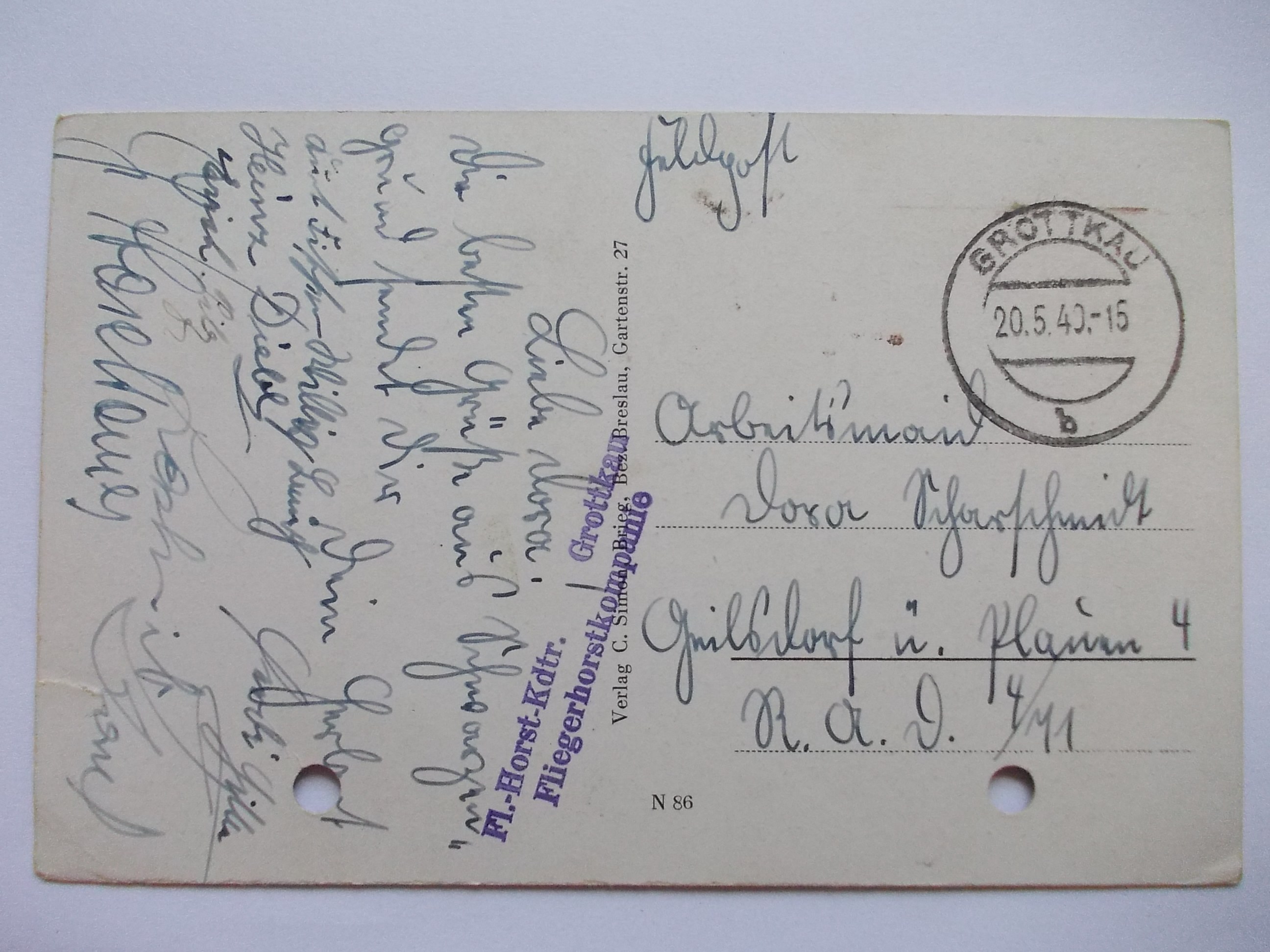 Przedmiotem licytacji jest oryginalna pocztówka. Stan zachowania oraz obieg widoczny na fotografiach, dziurki po dziurkaczu