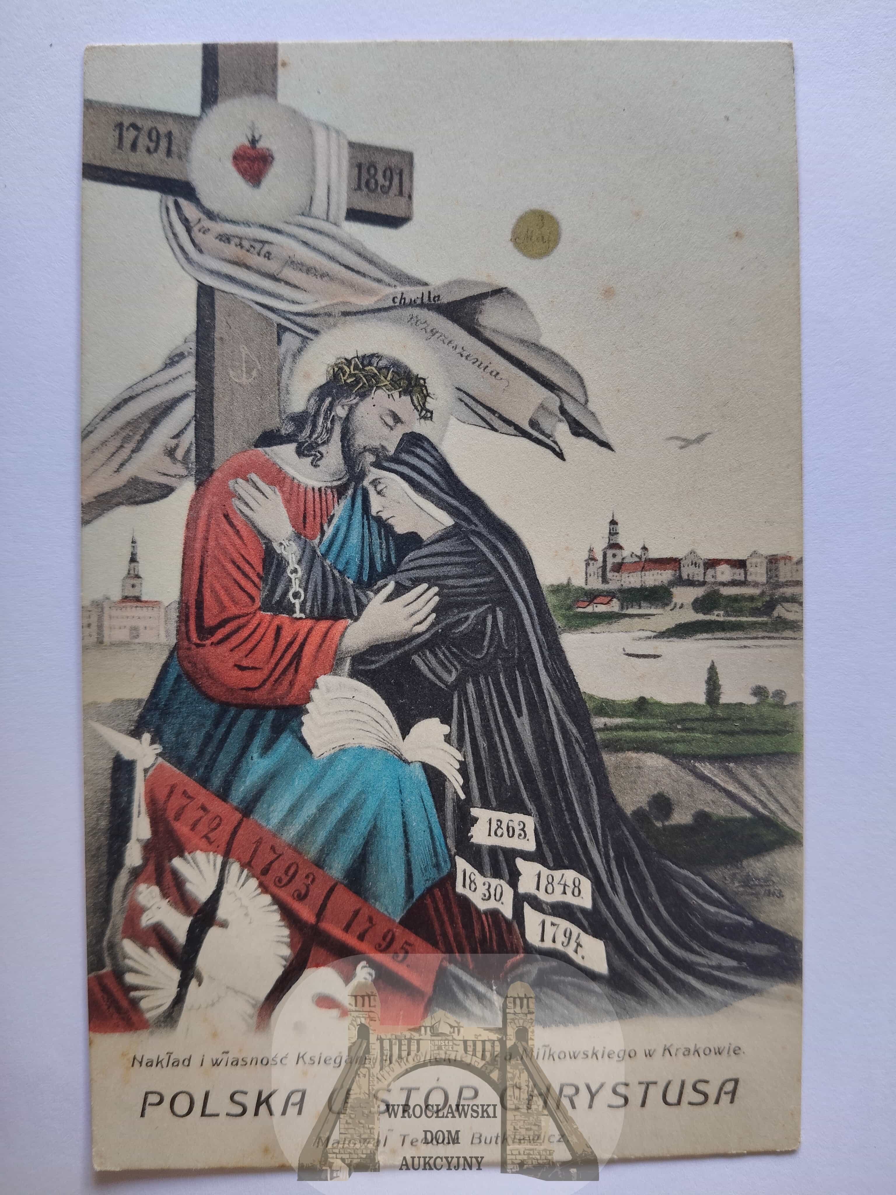Kraków, Polska u stup Chrystusa, patriotyczna, orzeł, Zamek Wawel, kolaż, ok. 1905