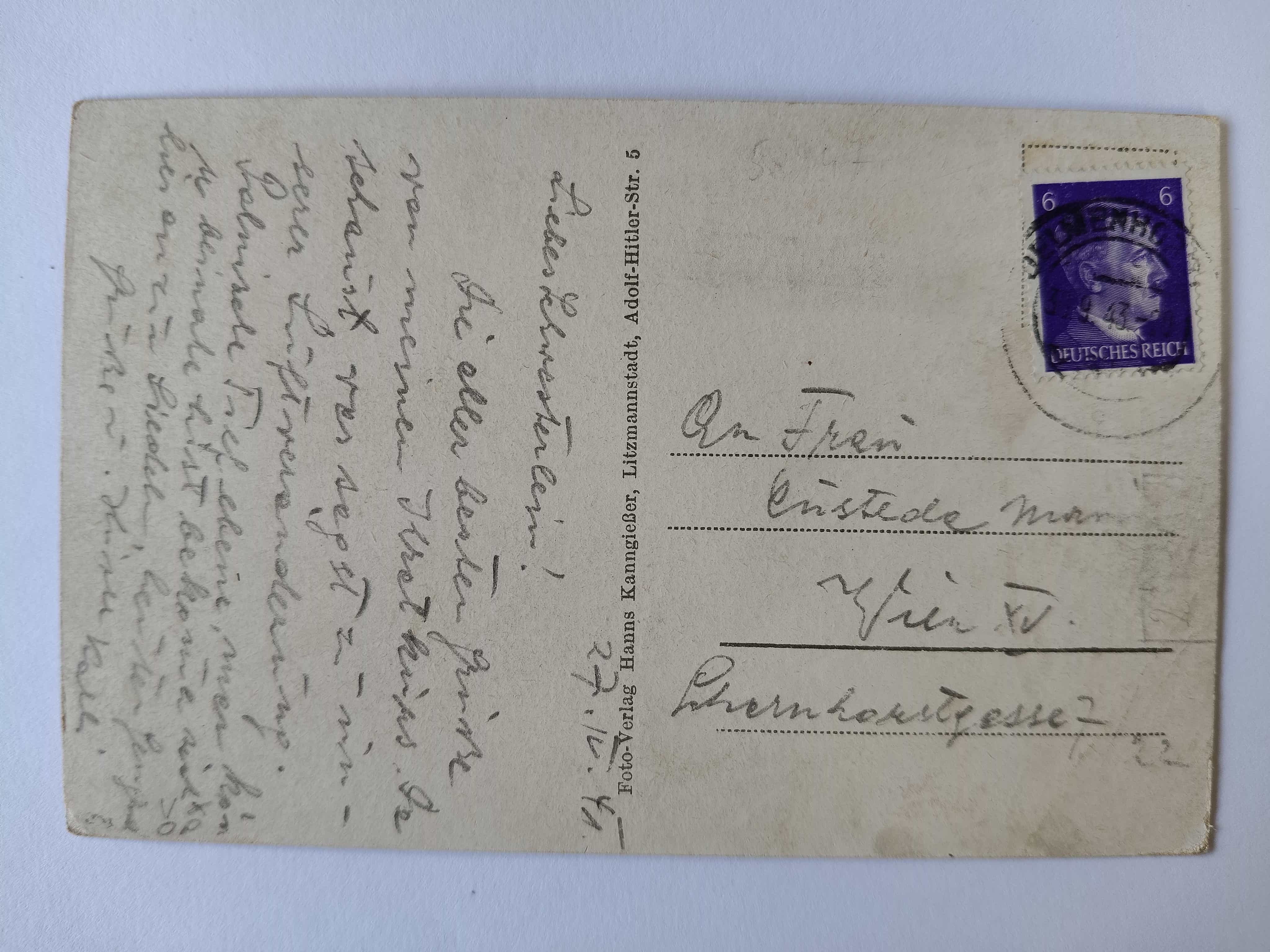 Przedmiotem licytacji jest oryginalna pocztówka. Stan zachowania oraz obieg widoczny na fotografiach, zgięty narożnik, brak wad ukrytych.