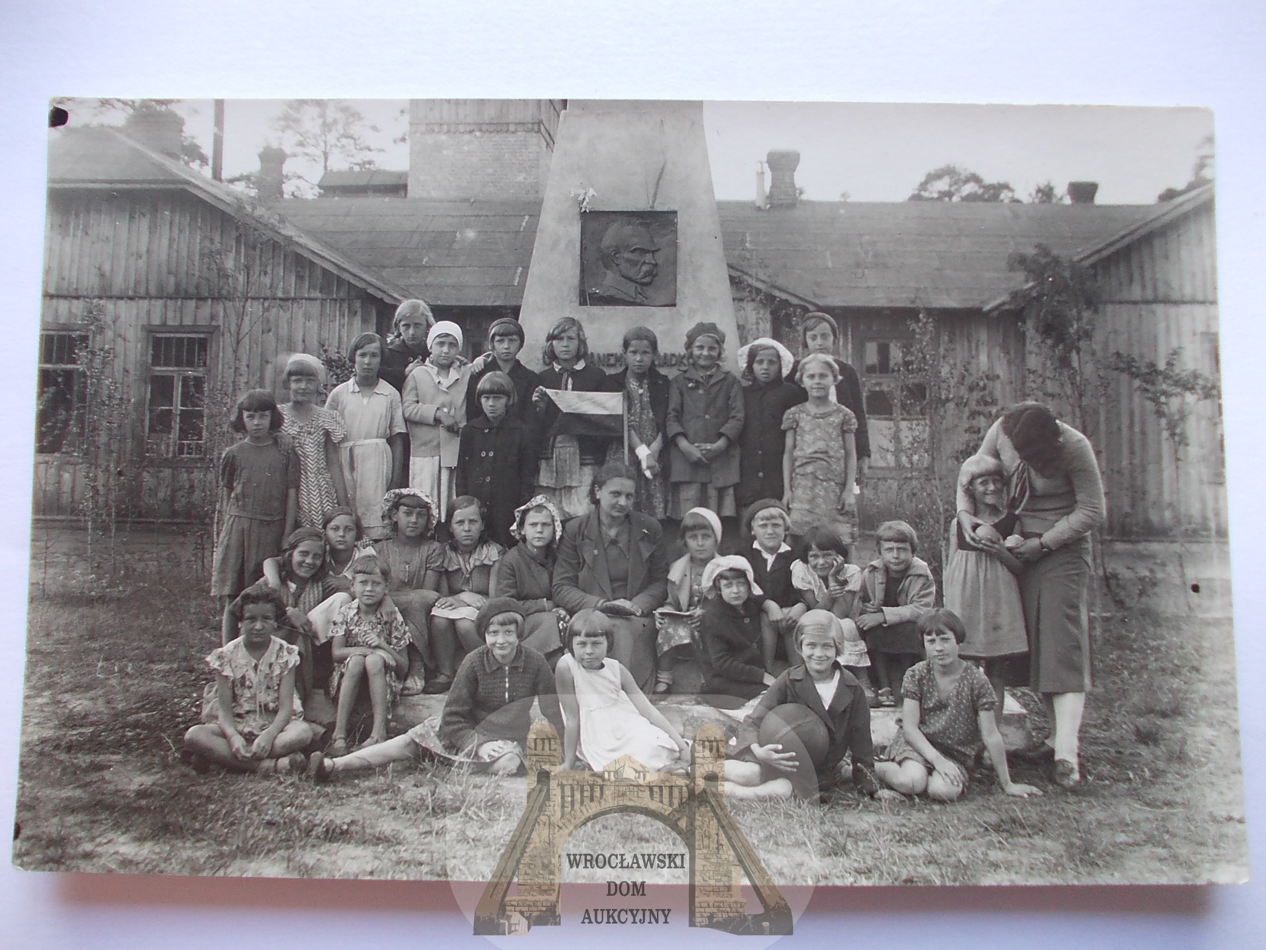 Małkinia Górna k. Ostrów Mazowiecka, pomnik Józef Piłsudski, dzieci ok. 1935