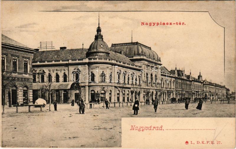 Nagyvárad, Oradea; Nagypiac tér, Lloyd kávéház, Nádor üzlete. I. D.K.F.E. 27. / market square, café, shops (fl)