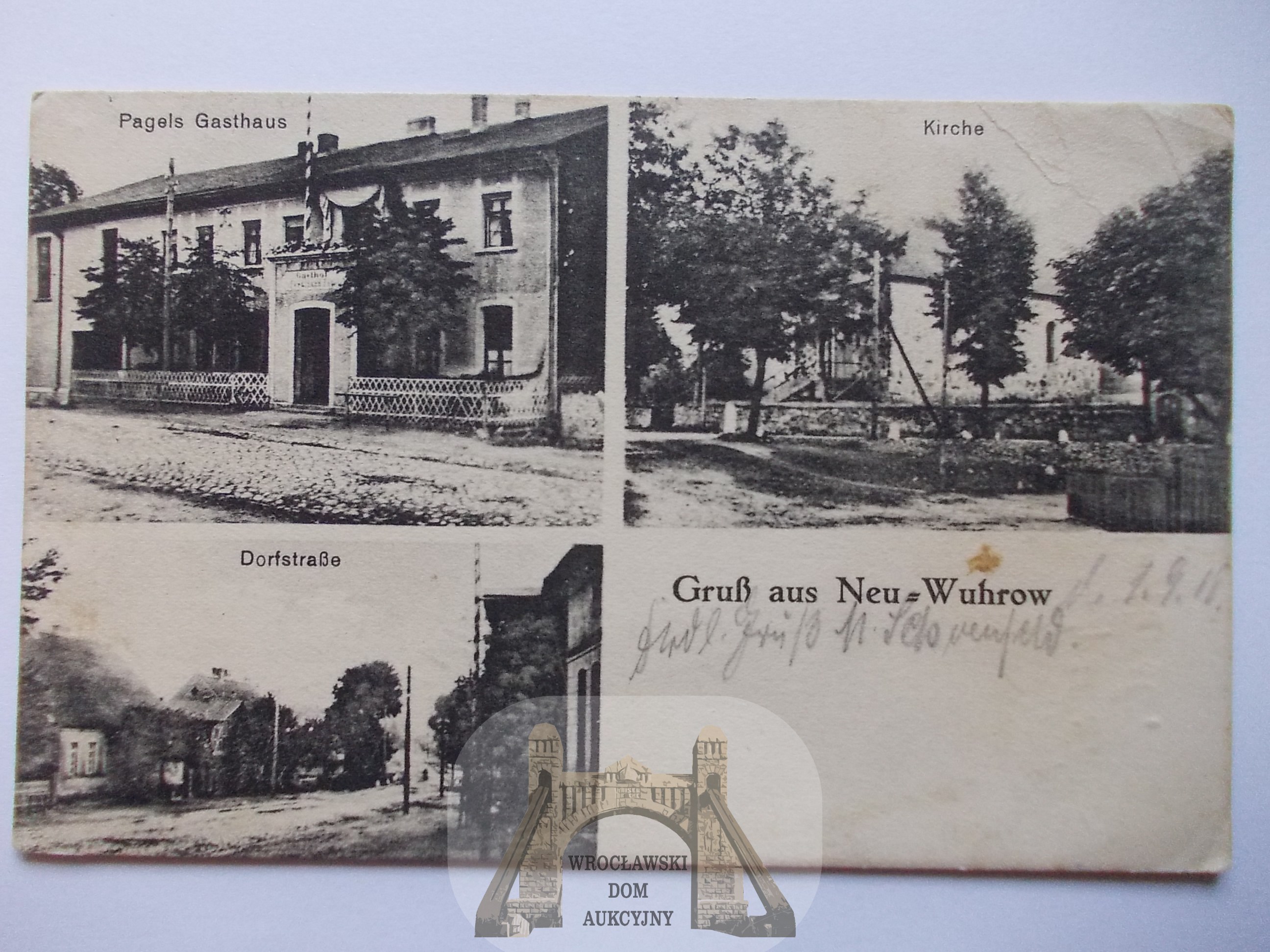 Nowe Worowo, k. Drawsko Pomorskie, gospoda, kościół, ulica, 1918