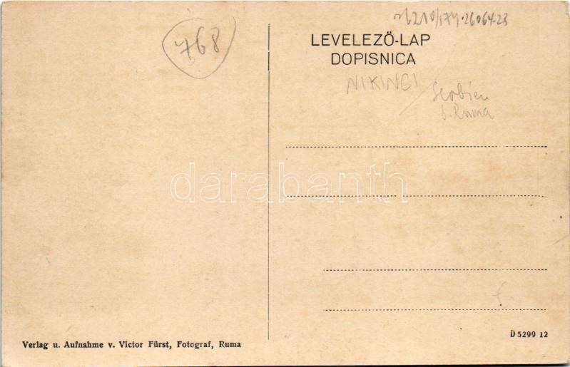 Nyékinca, Nikinci; vendéglő. Victor Fürst felvétele és kiadása (Ruma) / restaurant, street