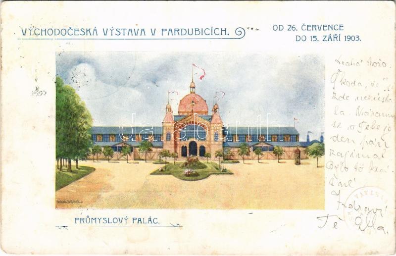 Pardubice, Pardubitz; Vychodoceská Vystava v Pardubicích. Prumyslovy palác 1903 / East Bohemian Exhibition, Palace of Industry + So. Stpl. (fl)