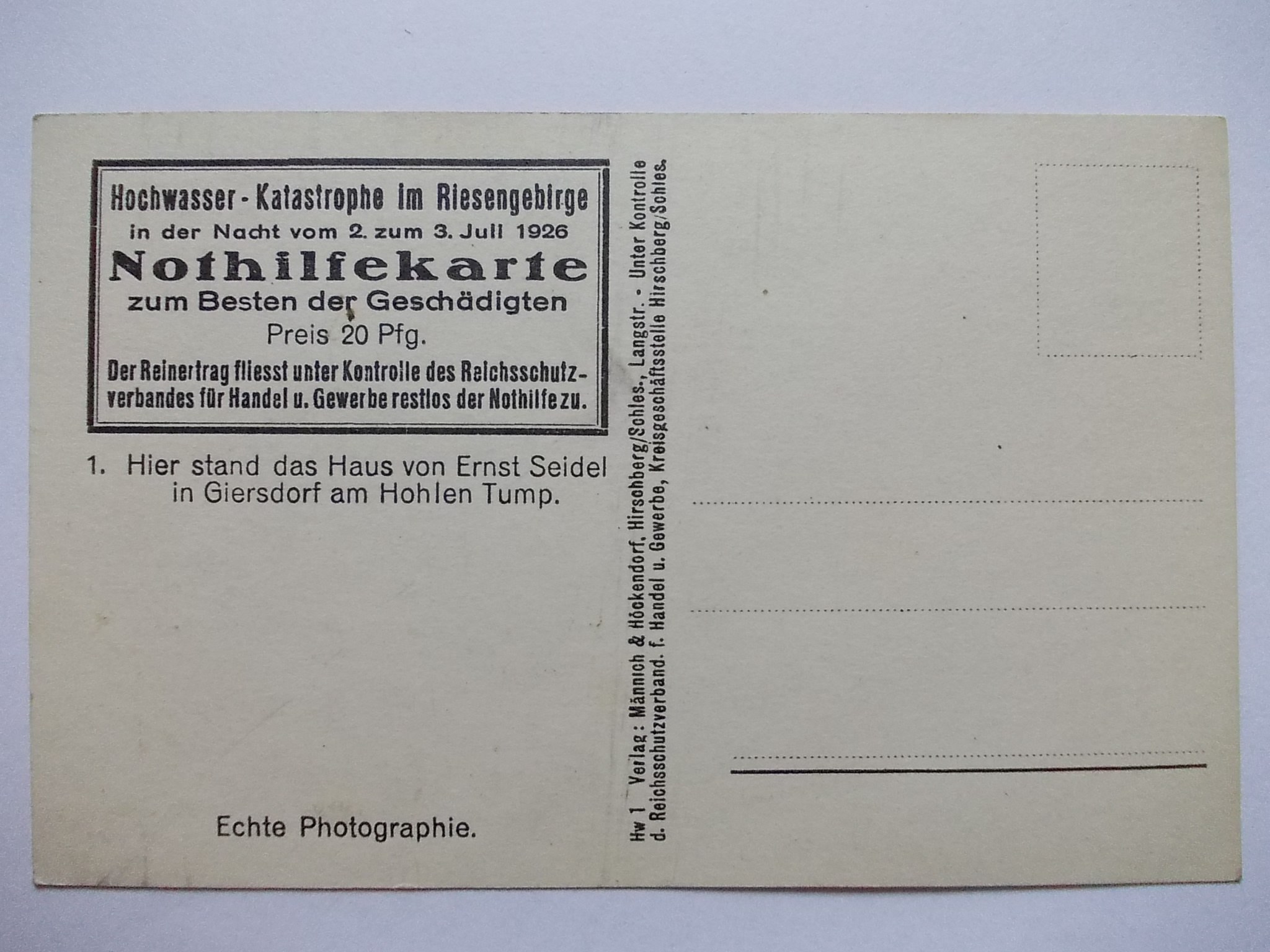 Podgórzyn, Giersdorf, Powódź 1926, kartka cegiełka