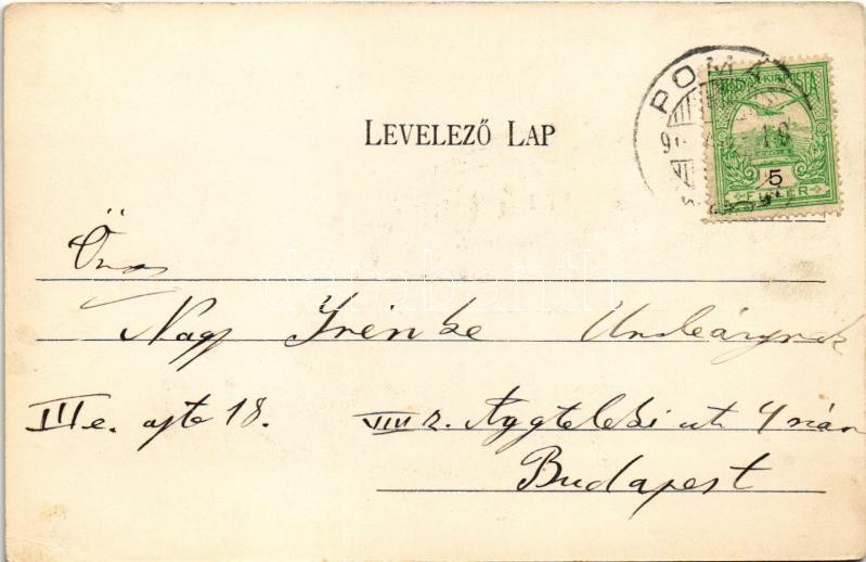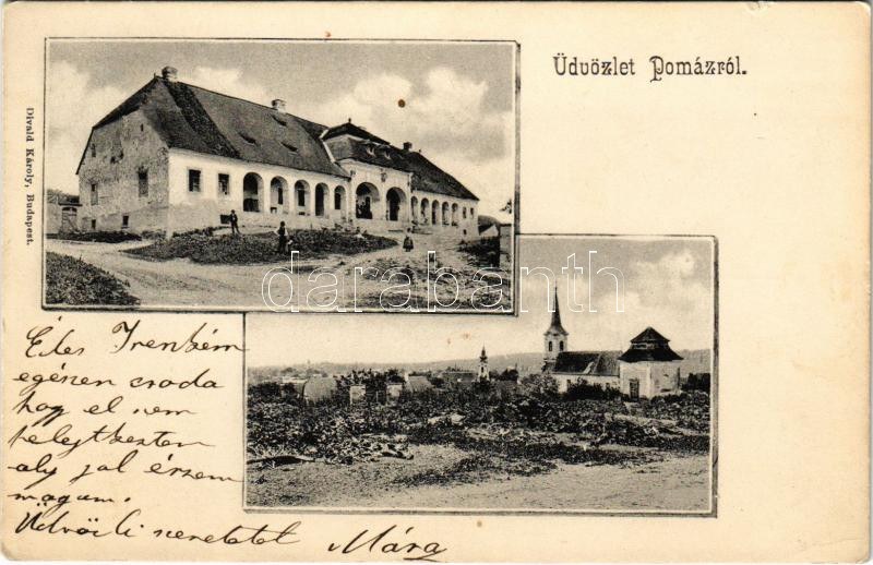 Pomáz, Wattay-Teleki kastély (még az átépítés előtt), templomok. Divald Károly kiadása (EK...