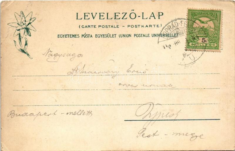 Poprád (Tátra, Magas-Tátra, Vysoké Tatry); Fő út, templom, üzletek. Feitzinger Ede 65. Auto-Chrom 1904/15. ...