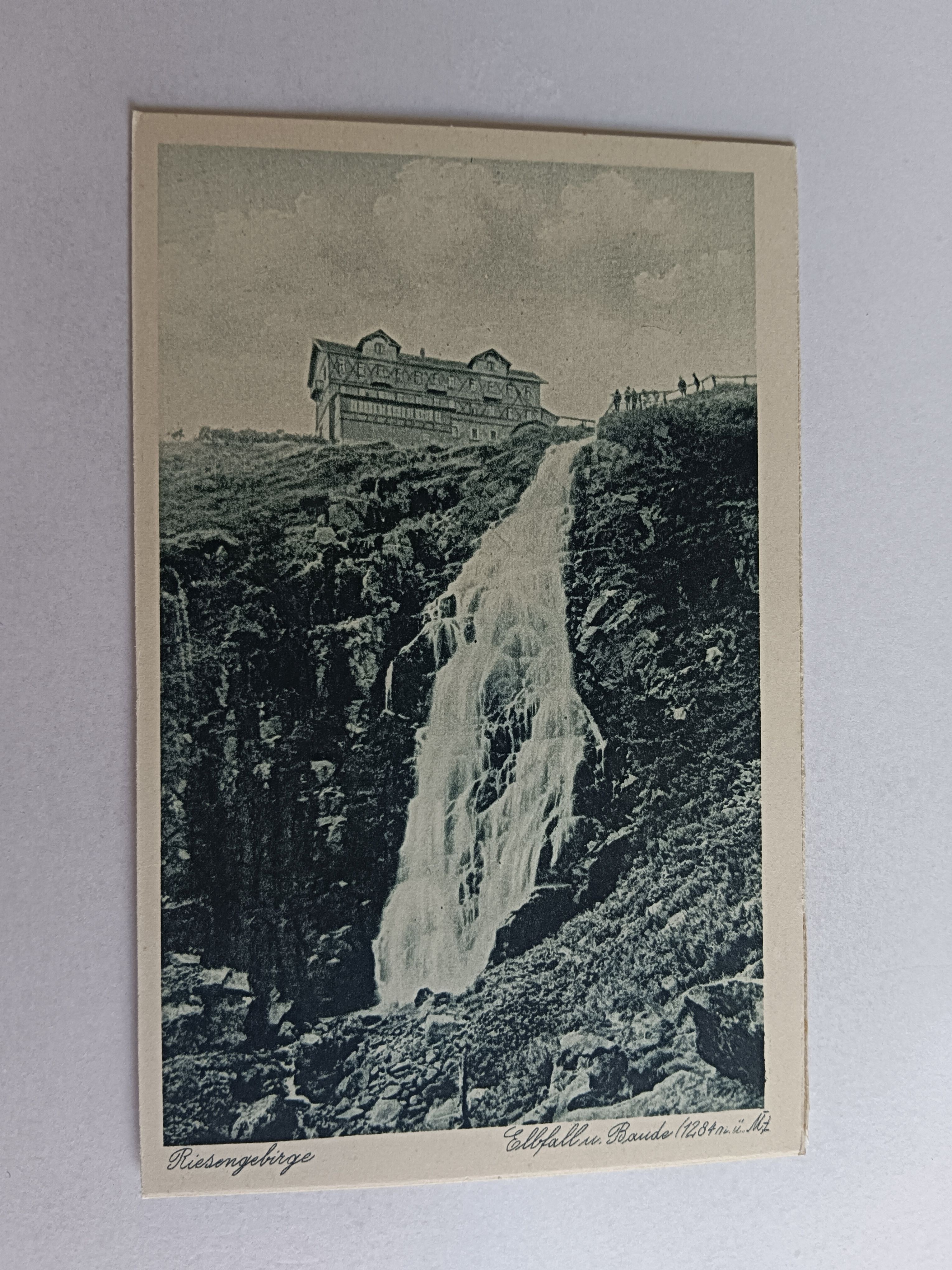 POCZTÓWKA KARKONOSZE RIESENGEBIRGE, SCHRONISKO, WODOSPAD