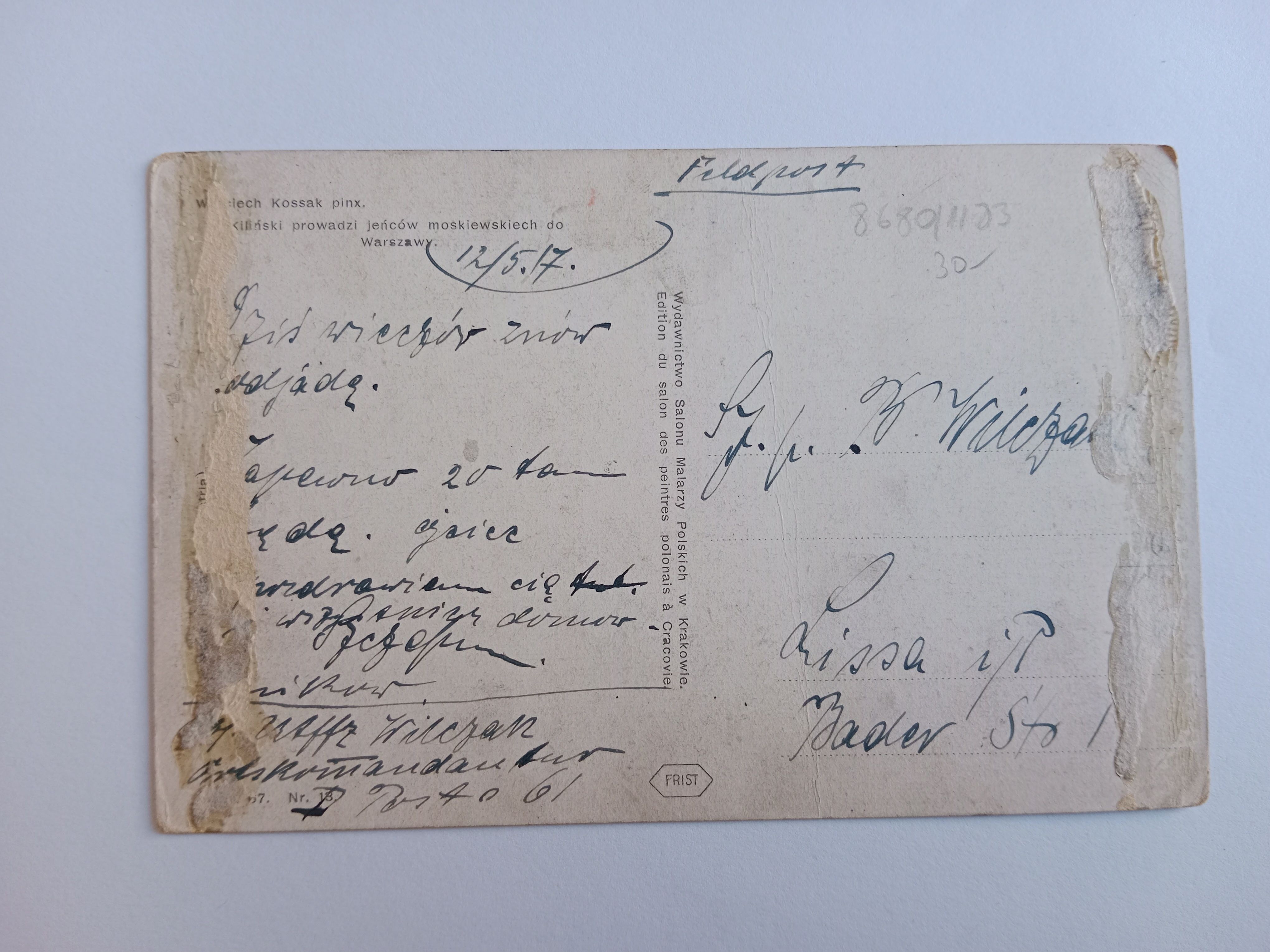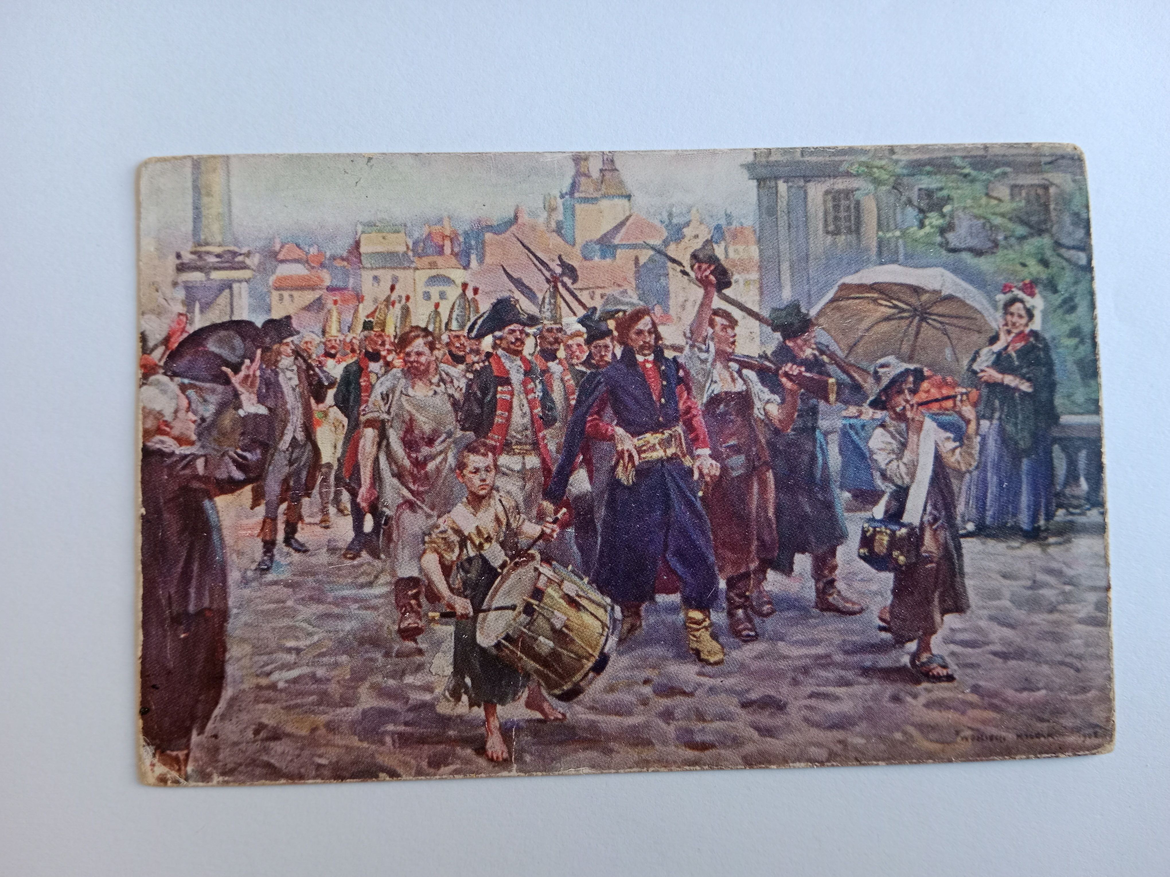 POCZTÓWKA MALARSTWO POLSKIE KOSSAK KILIŃSKI PROWADZI JEŃCÓW MOSKIEWSKICH DO WARSZAWY PRZEDWOJENNA 1917 R