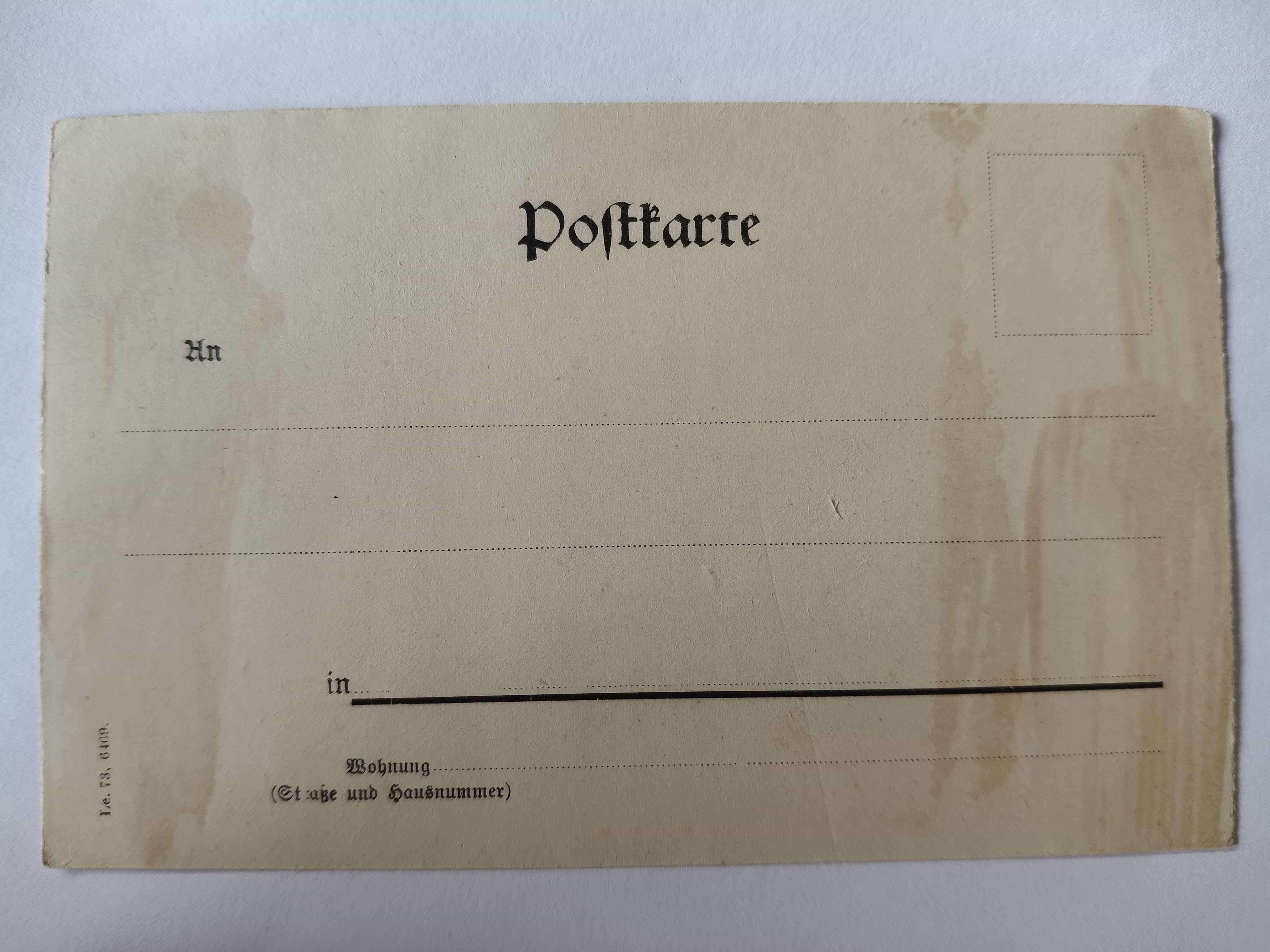 Przedmiotem licytacji jest oryginalna pocztówka. Stan zachowania oraz obieg widoczny na fotografiach, ślady po kleju na rewersie, brak wad ukrytych.