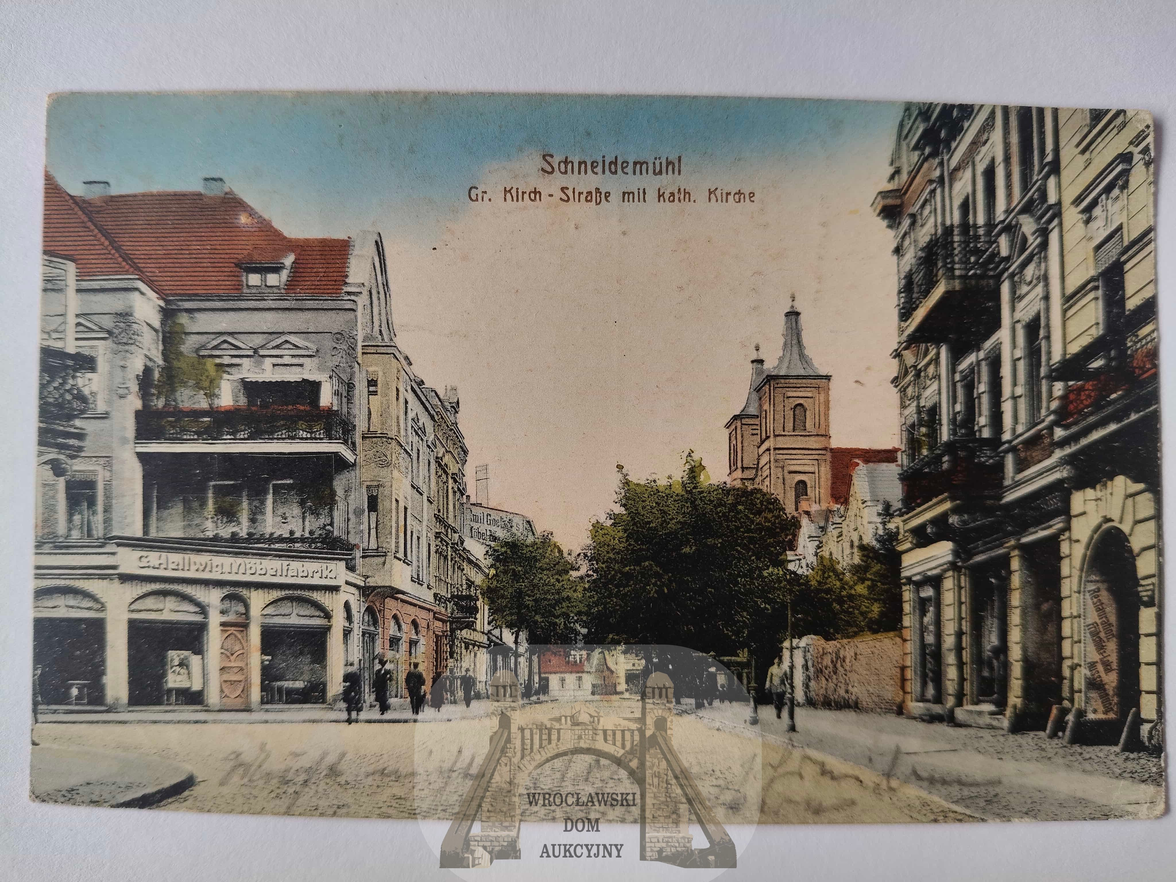 Piła, Schneidemuhl, ulica, kościół ok. 1918