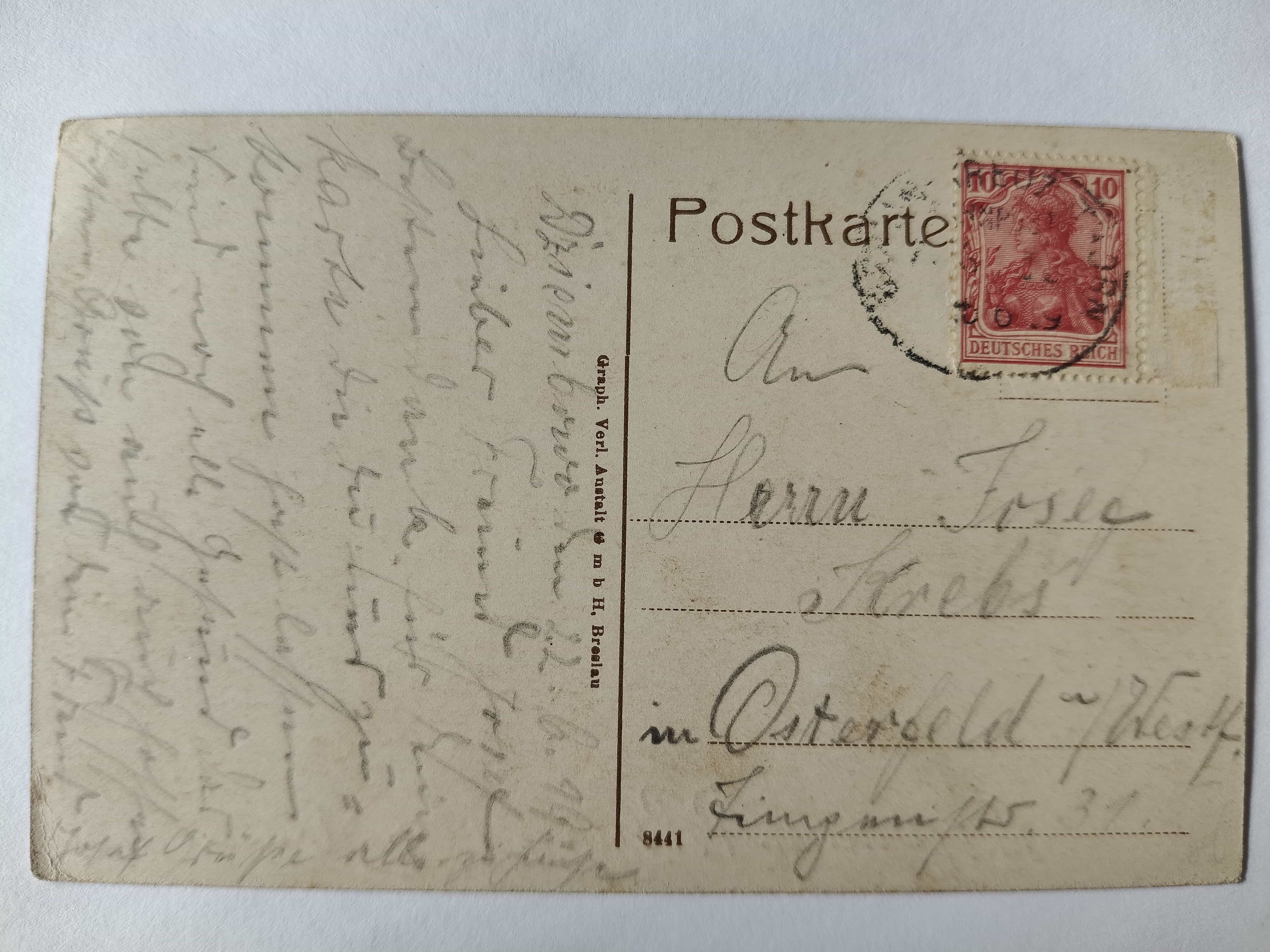 Przedmiotem licytacji jest oryginalna pocztówka. Stan zachowania oraz obieg widoczny na fotografiach, brak wad ukrytych.