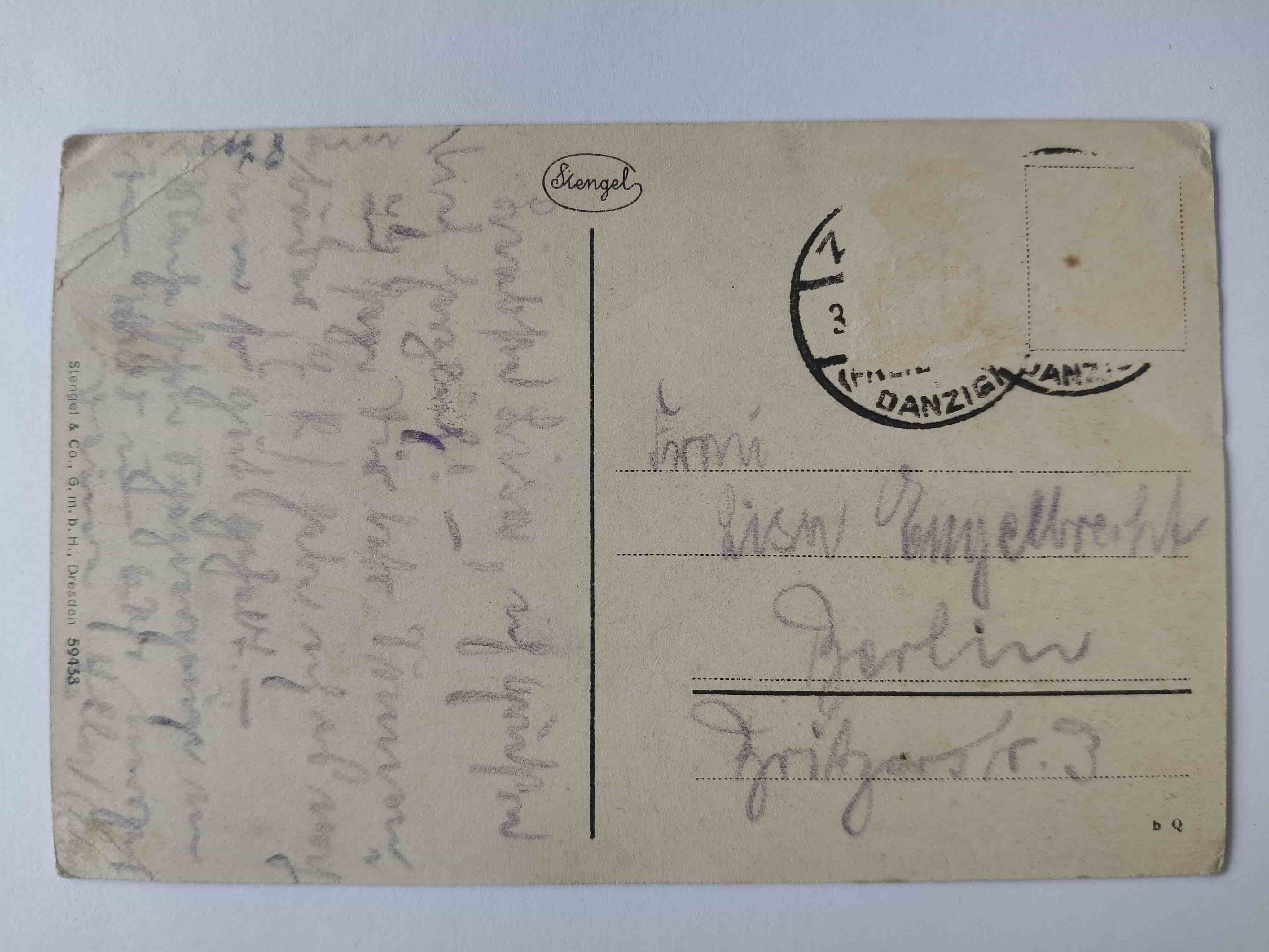 Przedmiotem licytacji jest oryginalna pocztówka. Stan zachowania oraz obieg widoczny na fotografiach, zgięty narożnik, brak wad ukrytych.