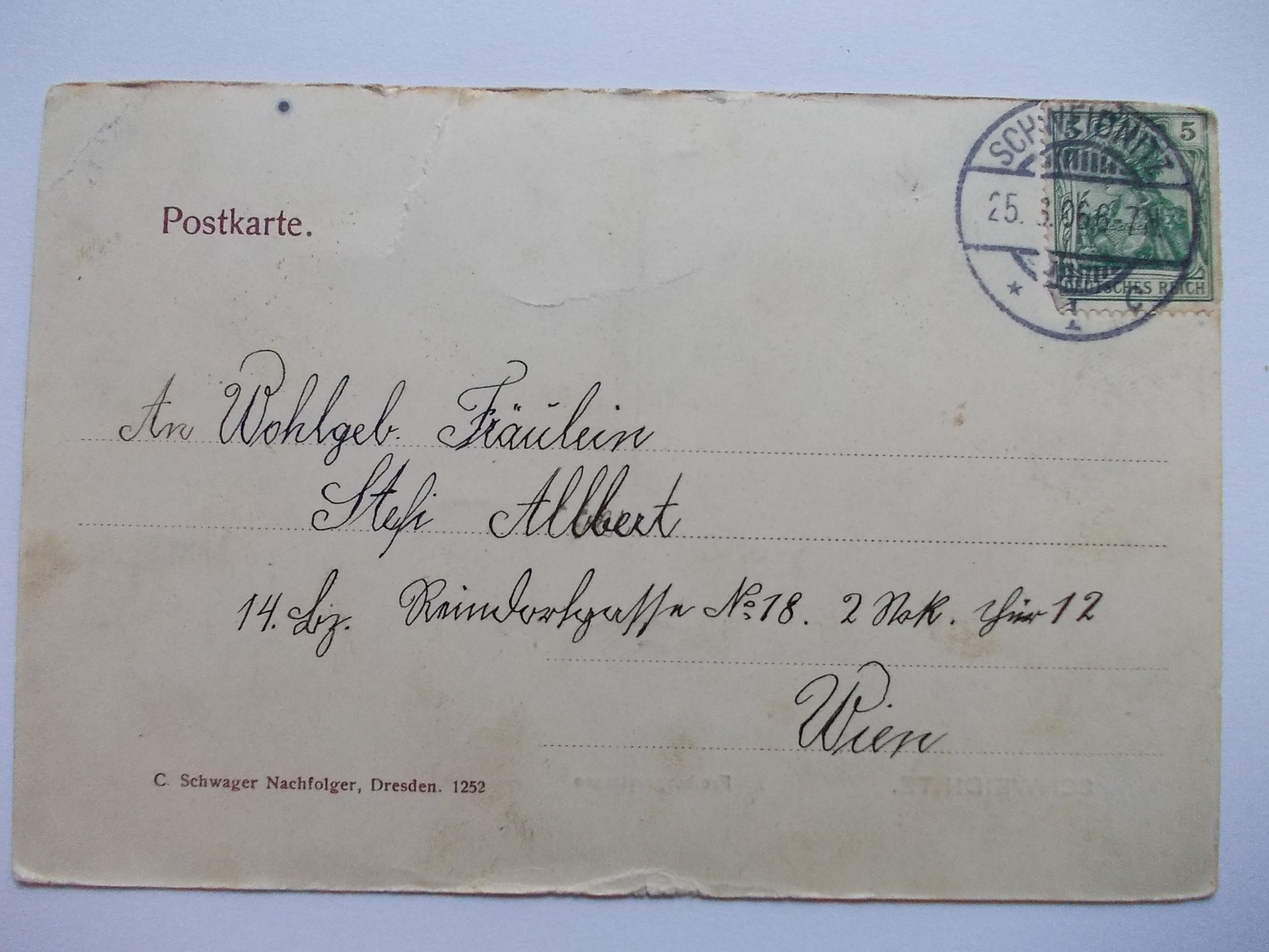 Przedmiotem licytacji jest oryginalna pocztówka. Stan zachowania oraz obieg widoczny na fotografiach, rozdarcie