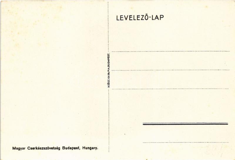 Szakács cserkész. Magyar Cserkészszövetség, Klösz Gy. és Fia / Hungarian boy scout art postcard with cook s: Márton L. ...