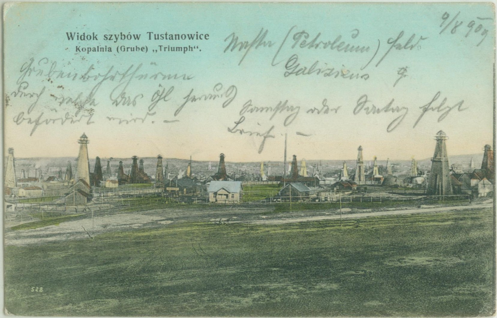Tustanowice – Widok szybów, Kopalnia "Triumph", Wyd. kart widok. J. Pilpl, Drohobycz, druk kol., ok. 1909
