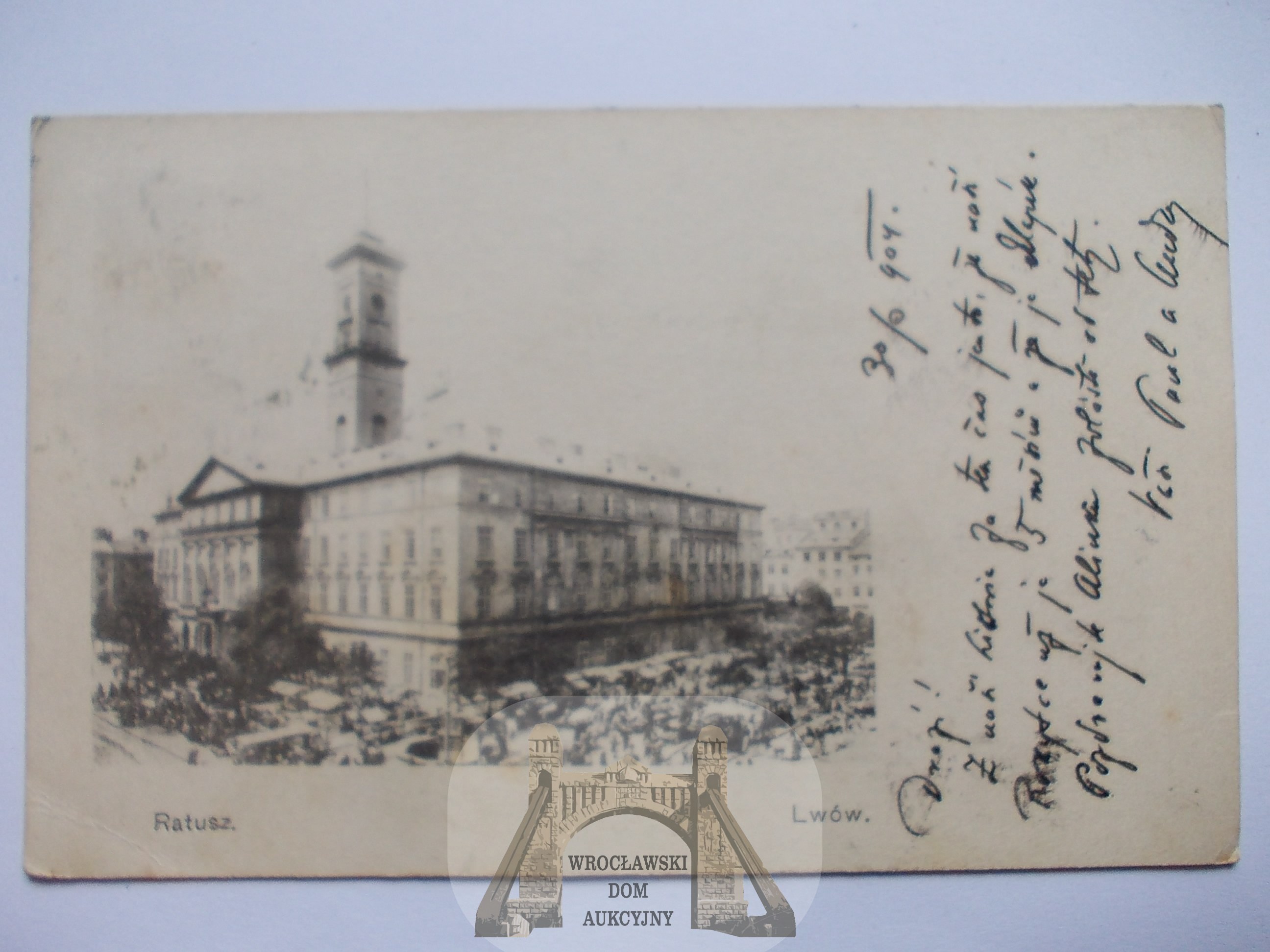 Ukraina, Lwów, ratusz, targowisko, ok. 1901
