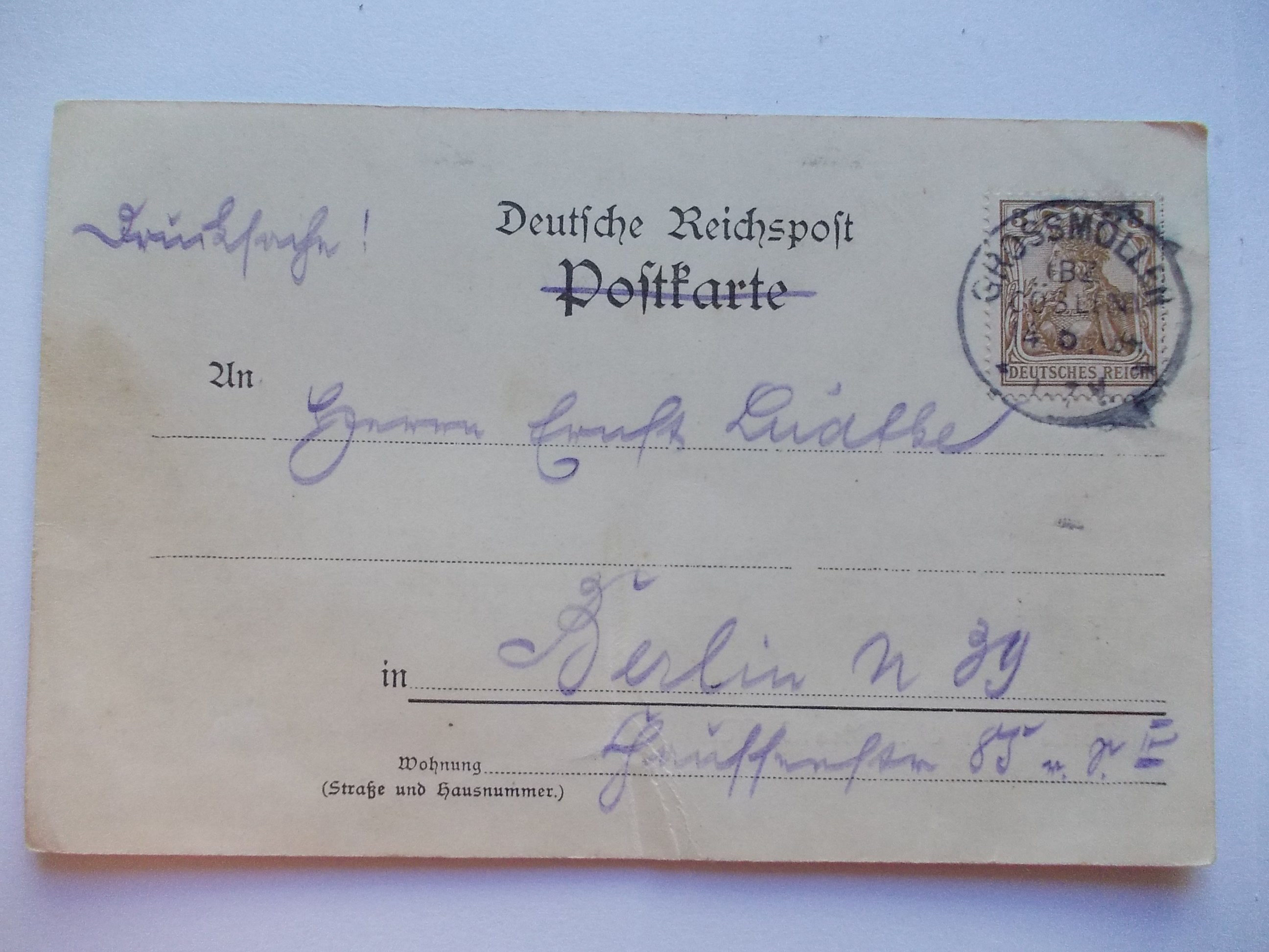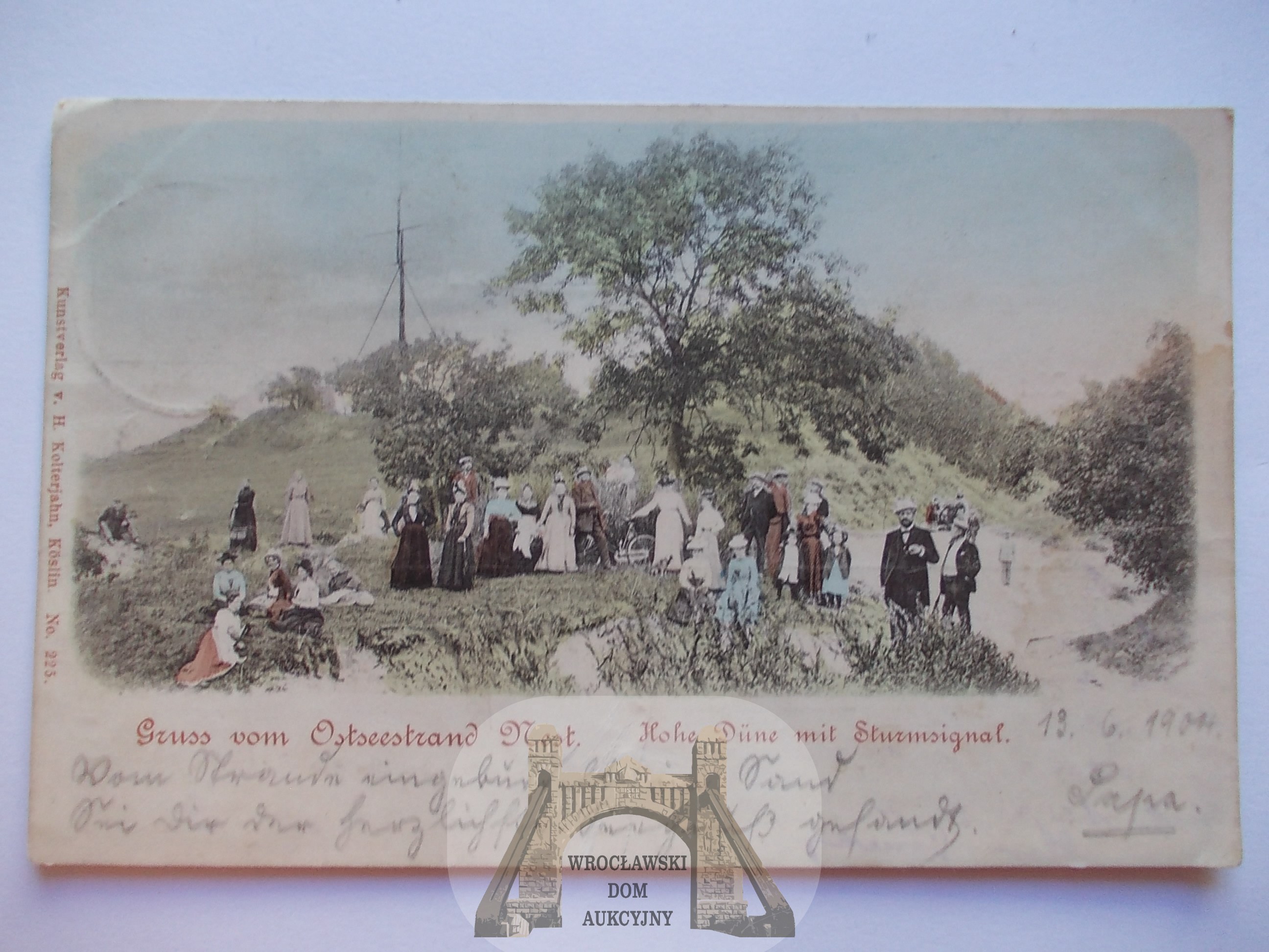 Przedmiotem licytacji jest oryginalna pocztówka. Stan zachowania oraz obieg widoczny na fotografiach, zgięta