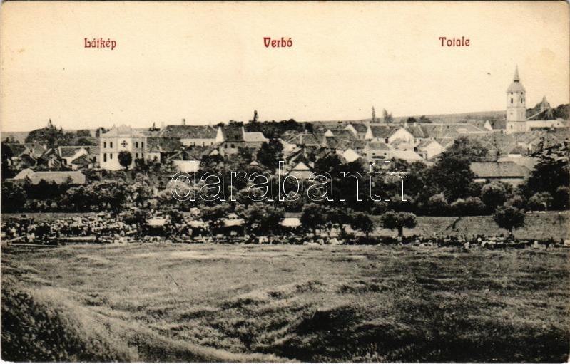 Verbó, Vrbové; Totale / látkép a zsinagógával. Emanuel István kiadása / general view with synagogue (EK)