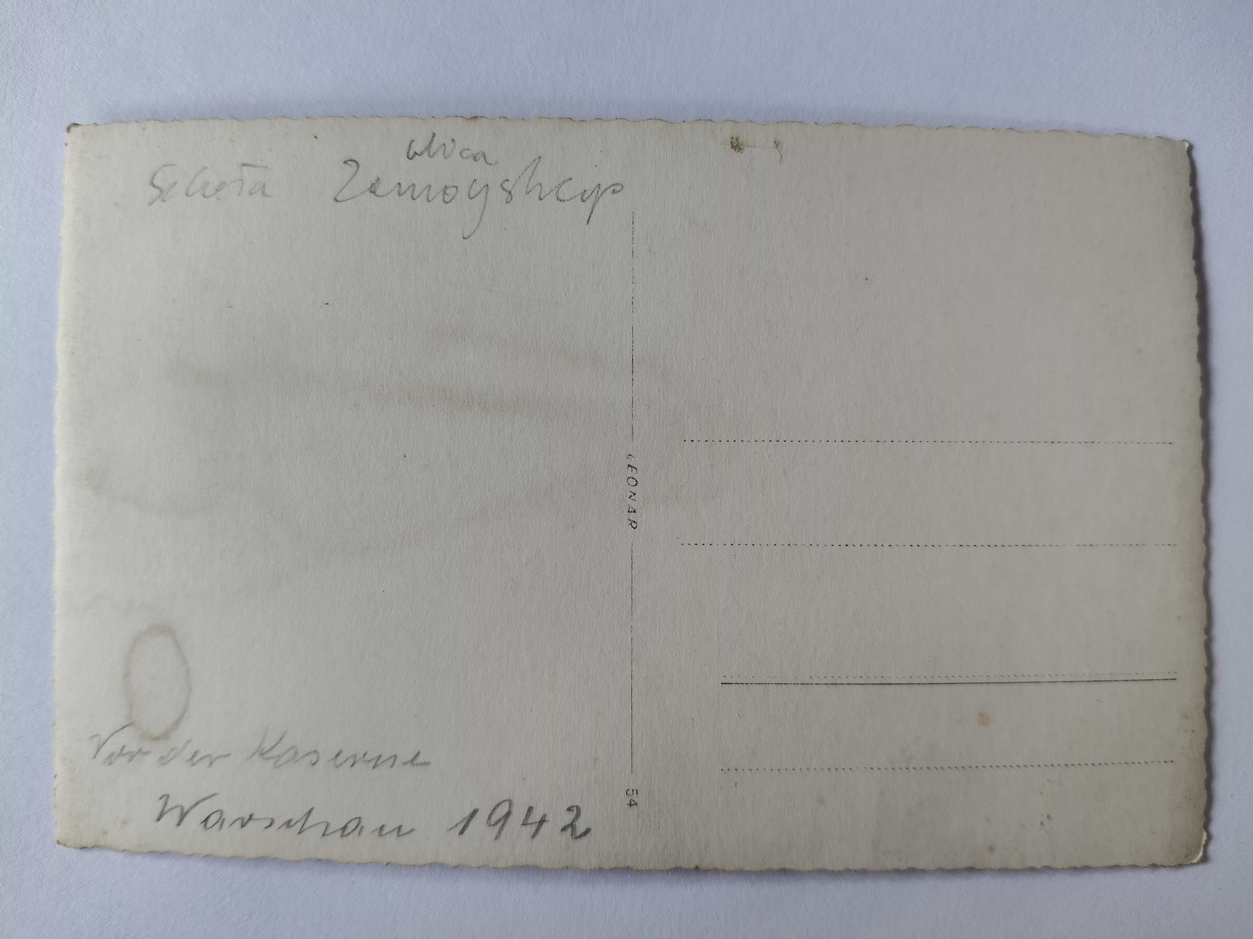 Warszawa, ulica Zamoyskiego, butka wartownicza przed obecną szkołą 1942